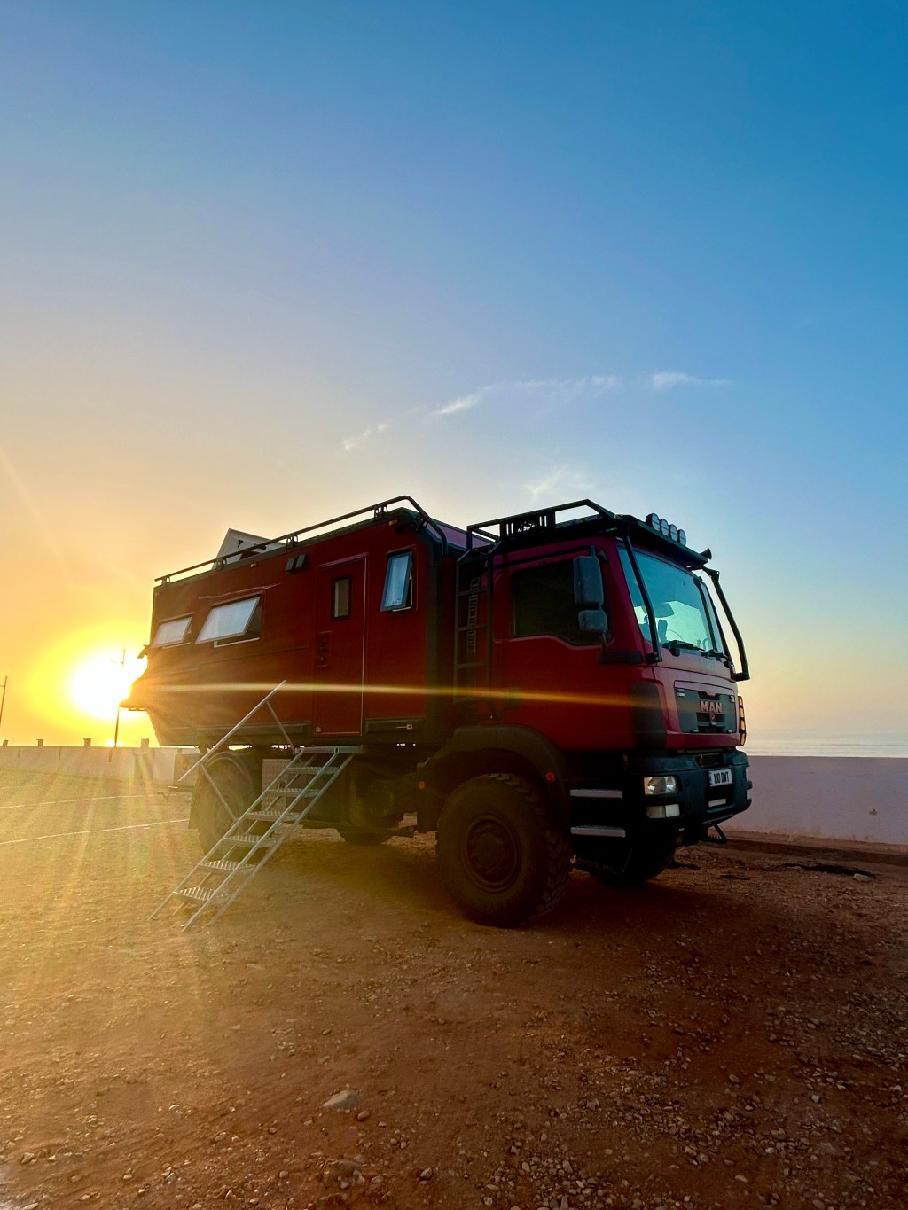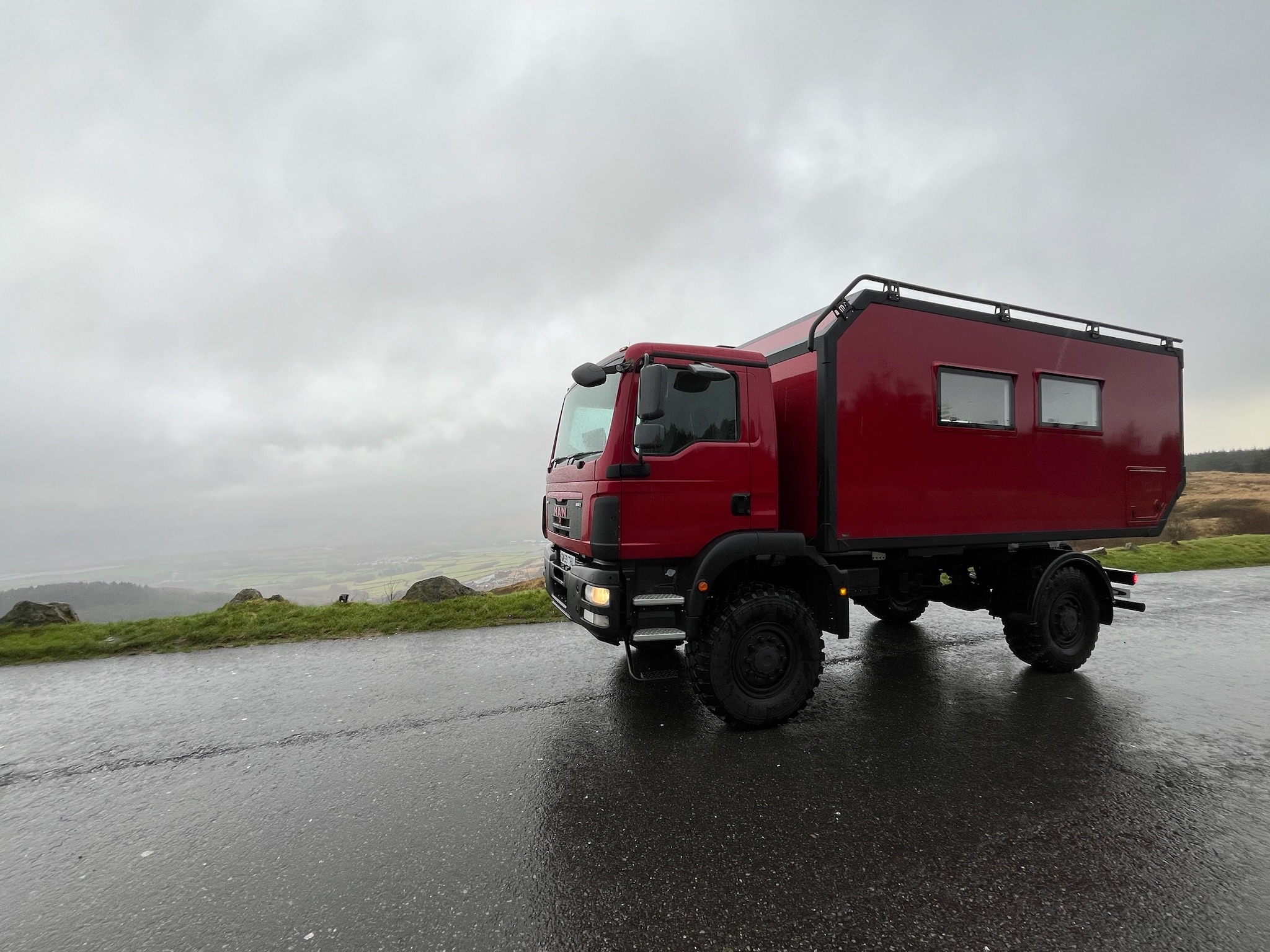 We’ve been traveling for the last 40 years. We started in a tent, progressed to long family road trips across the US, then bought a VW T5 called Dub to travel the UK and Europe. When she got too small, we upgraded to a Hymer MLT 580 Motorhome called Harvey the RV to travel further and longer. Our latest evolution is our 18 tonne 4×4 Red Dragon.