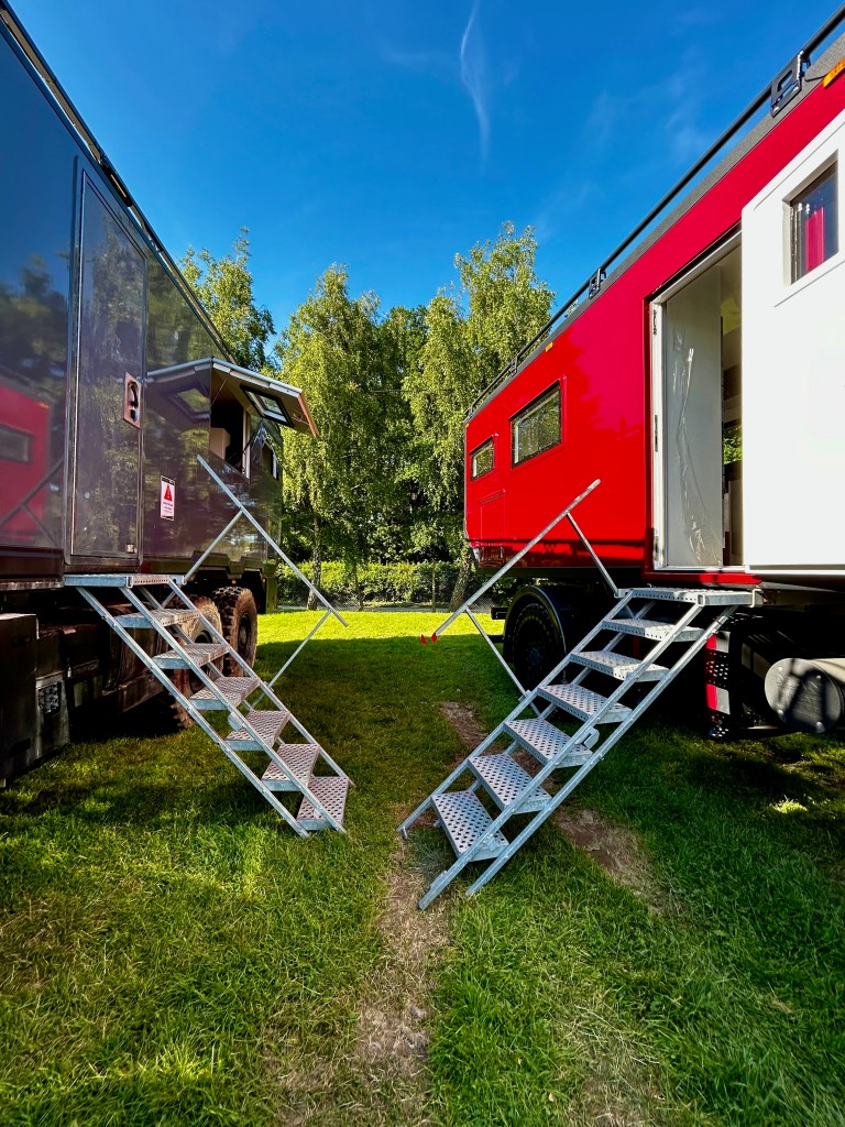 Our evenings were the best, spending time with new Overlanding besties, and hearing all about their exciting plans. Sometimes life just throws you another Lorry Sister just when you didn’t expect one, and meeting Julie of @Jamjourney was the highlight of my trip. Lyn had been messaging her husband Mark for months and they had built up a friendship, but in Julie I immediately found my Gin Buddy. I can’t wait to follow their trip to the Americas when they ship their beautiful truck Shaun to Canada at the end of the month. I hope our paths cross again in reality; I know they will virtually. They were not the only truck with exciting plans; India, Nick and Freddie of @stormingtheglobe will be travelling overland to Australia next year, and Richard and Clair of @daft244adventure are converting a prison truck!