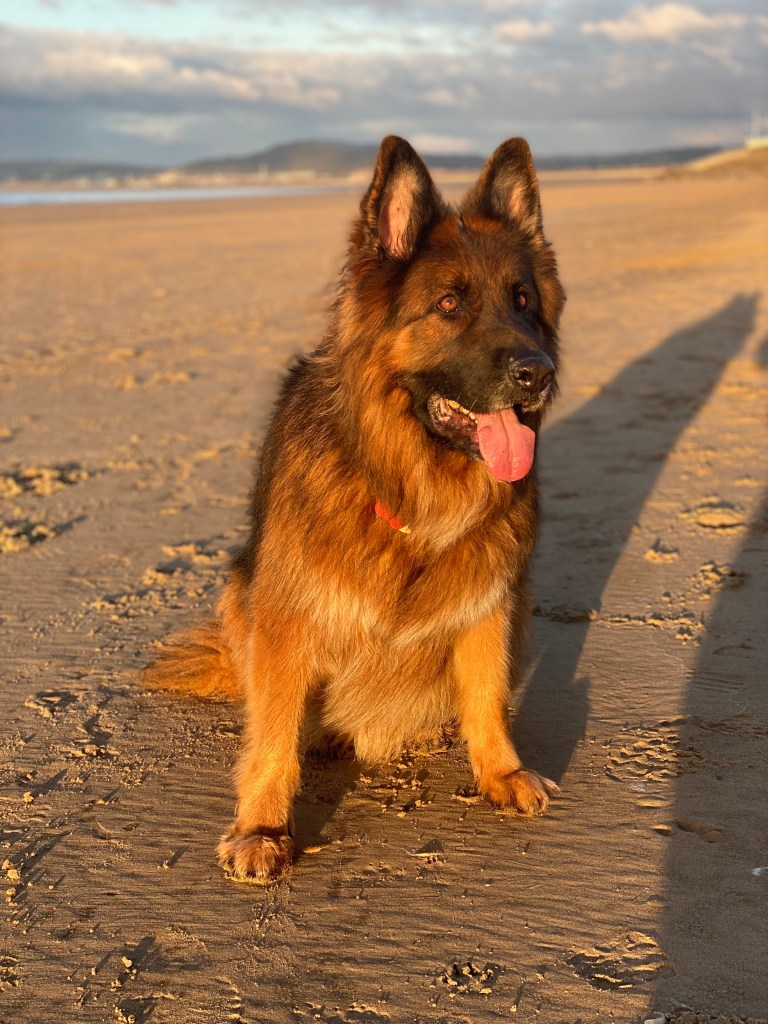 His home was wherever we were for the next 10 years. He turned from a tiny ball of fluff that couldn’t control his own ears into a majestic beast of a dog; a king with a goofy grin. He was always happy. He loved snoozing in front of the fire. He loved going on walks. He loved meeting friends, old and new; in fact, taking him out on a walk was like walking with a rock star on a lead. Everybody loved him, he attracted attention wherever he went. He took the love and gave it back. He loved to protect us, making sure he slept in front of whatever empty bedroom was the first line to defend. He had the loudest snore and the softest belly, ripe for tickles. He loved to run with Lyn, until his body let him down. He started with the local Park Run, where he had to go to the back of the crowd away from the start as he howled with excitement waiting to take off. He used to drag Lyn for the first mile, trot happily alongside him for the second, then have to be dragged or the final third. He even built up to running a half marathon.