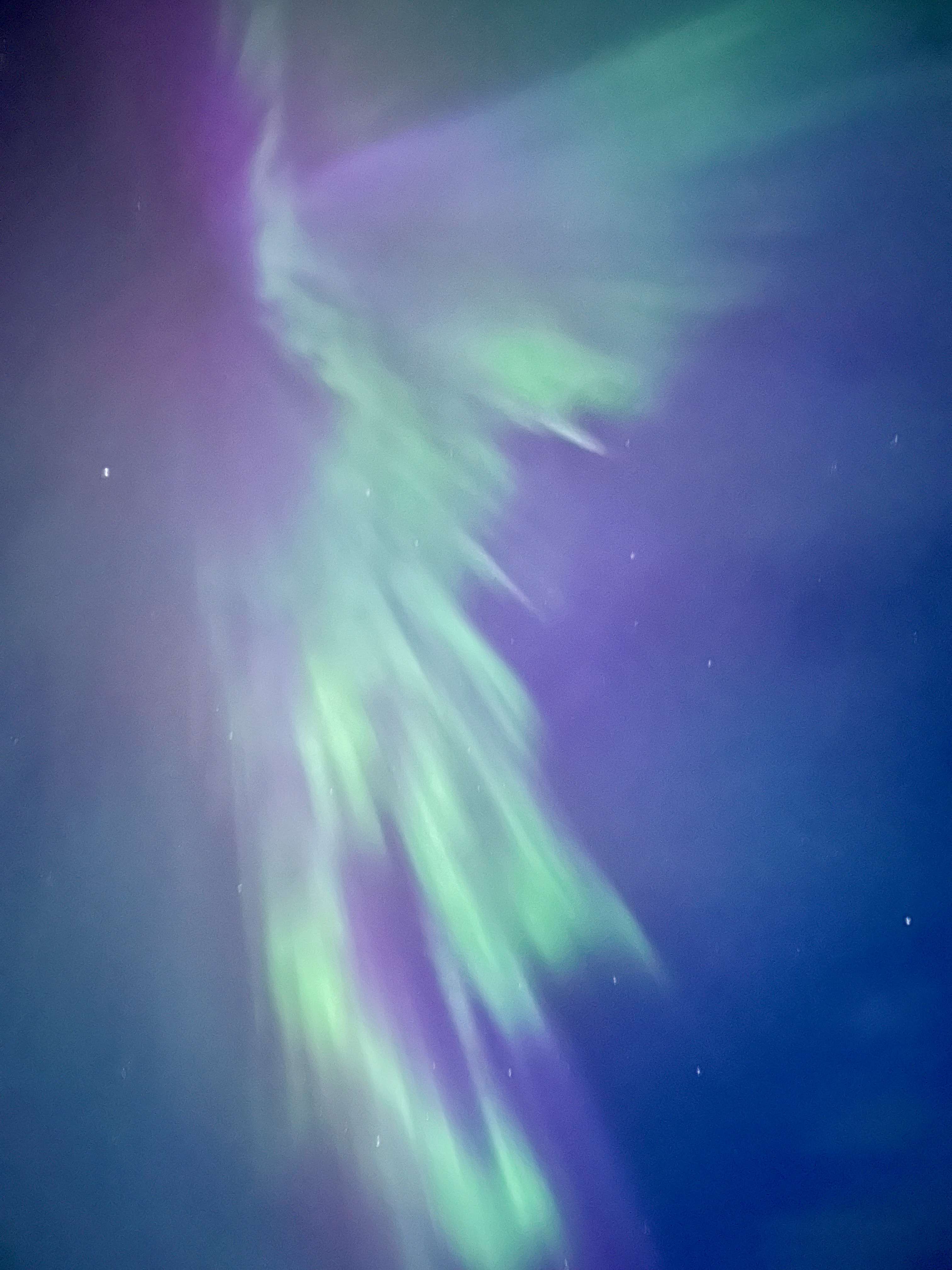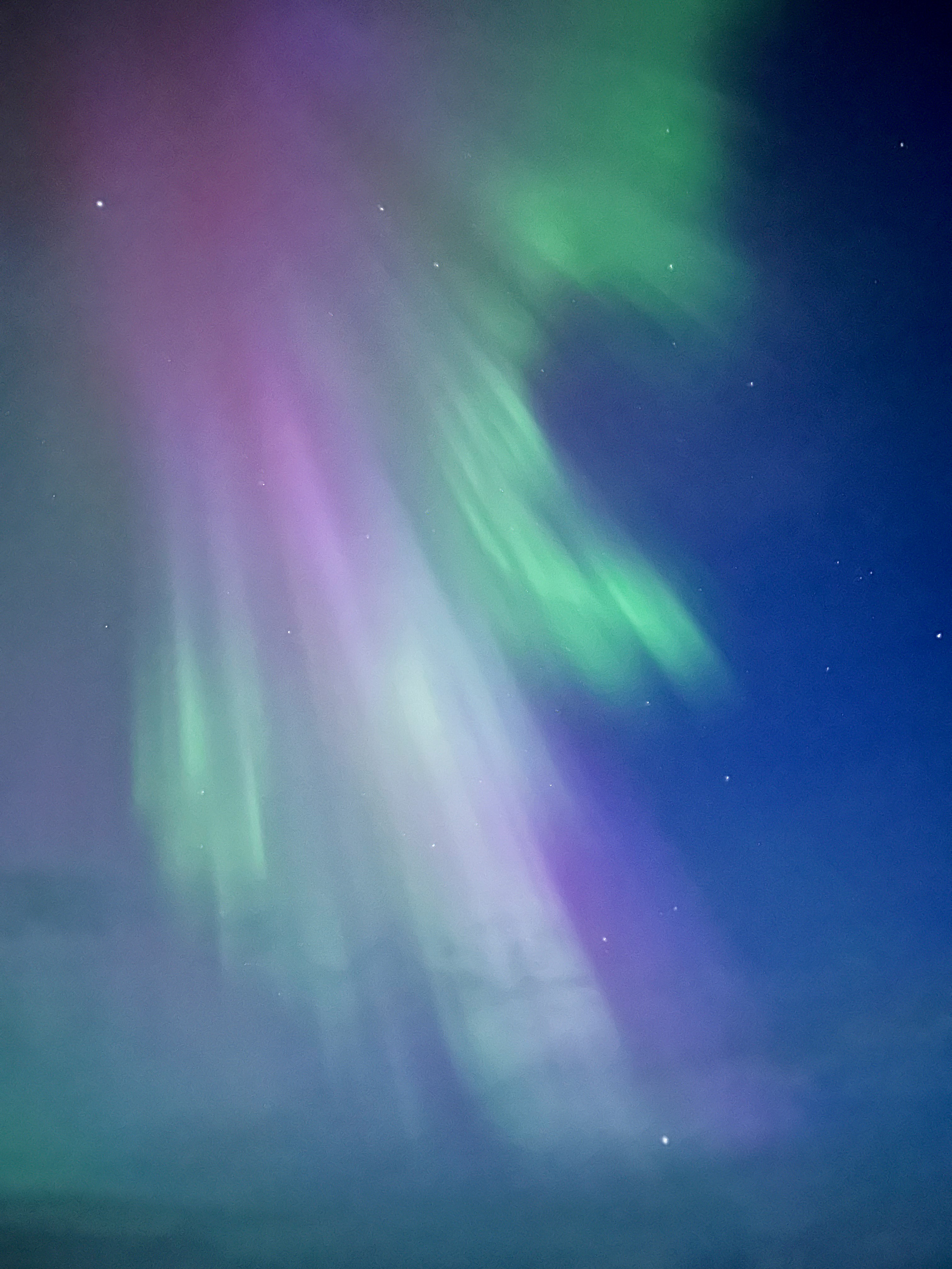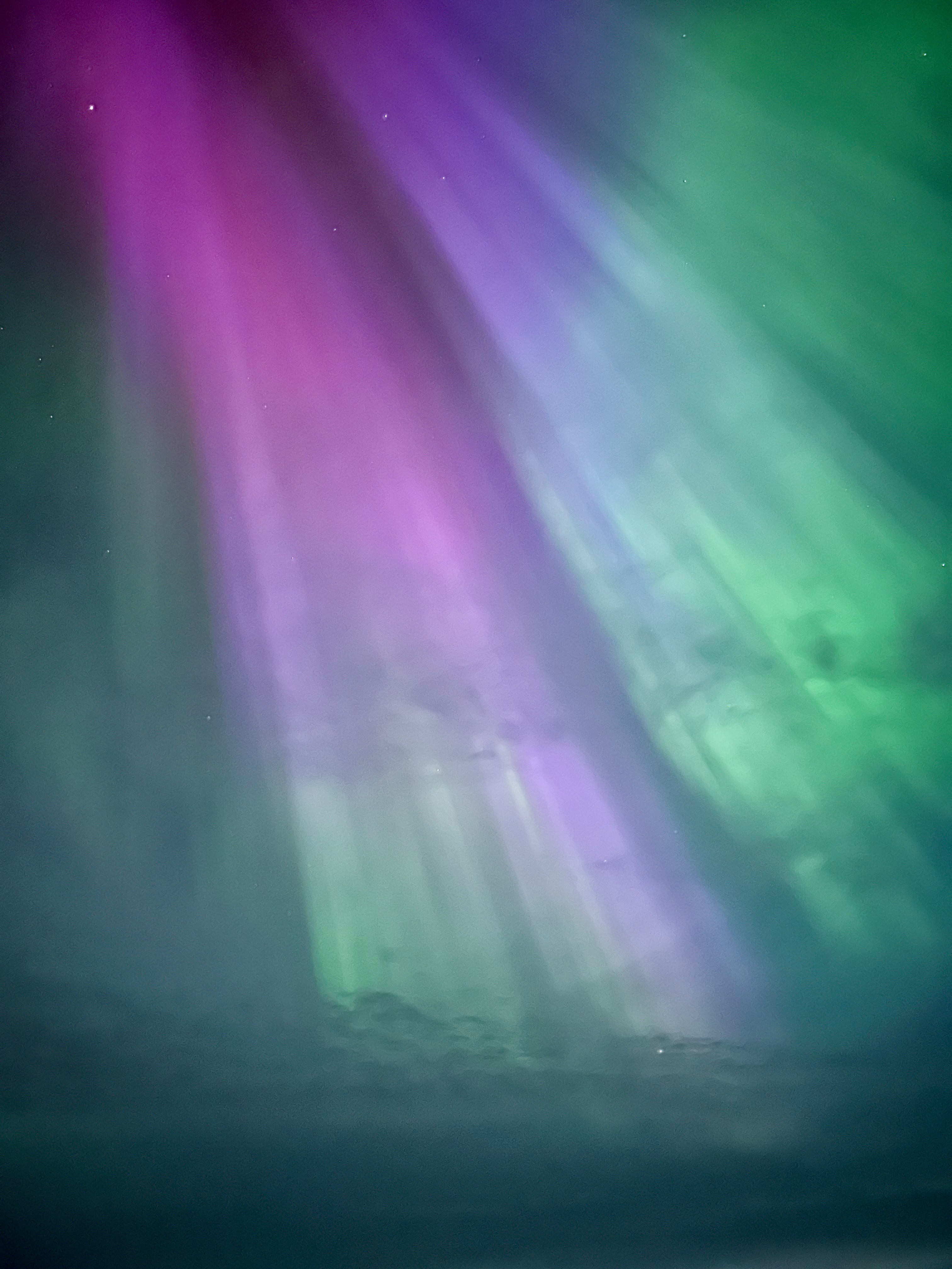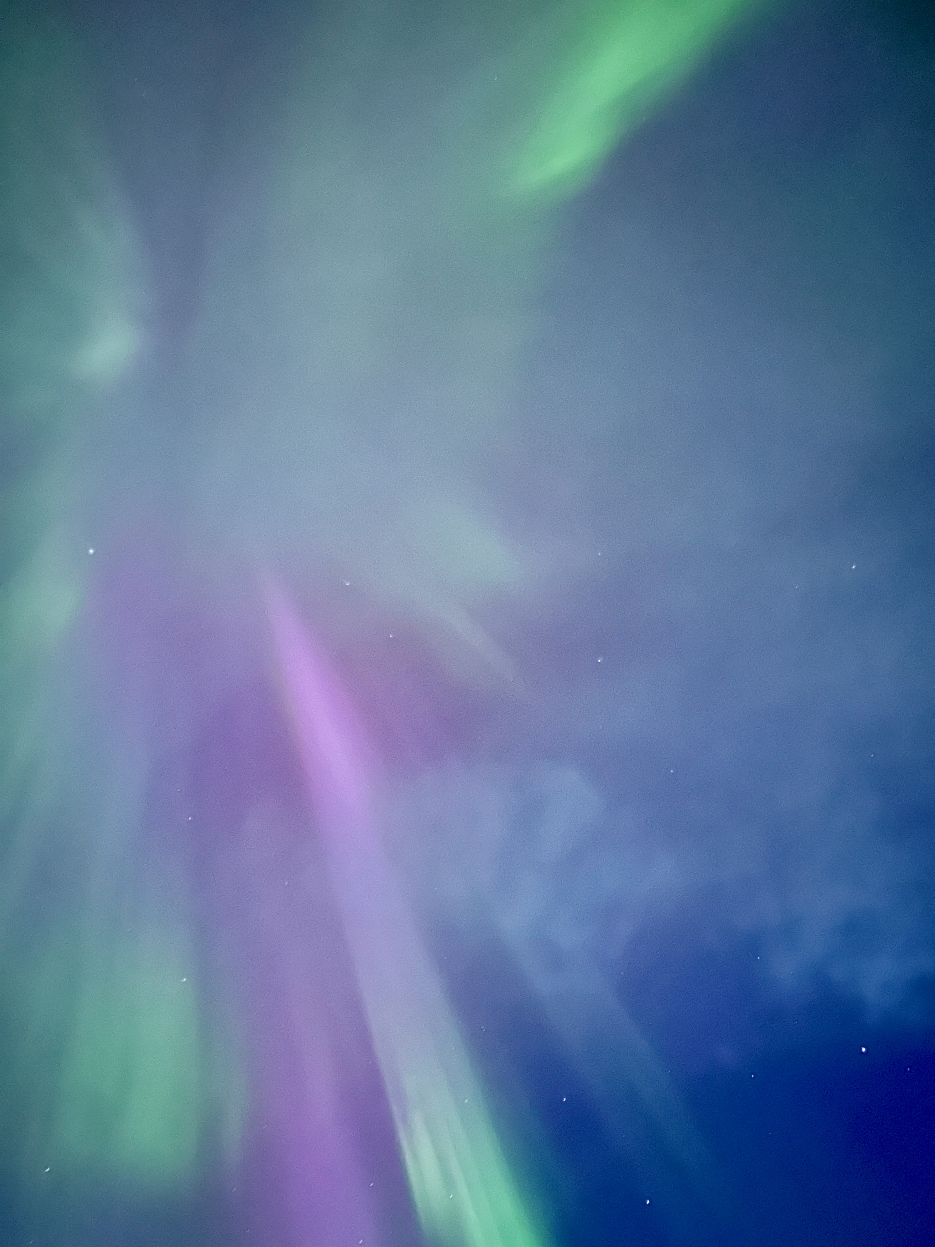 We were absolutely rewarded with an incredible show. It was absolutely mesmerising; the sky was a continuing, ever changing palette of pinks, purples and greens. It was magical, like the heavens were dancing. We were in awe.