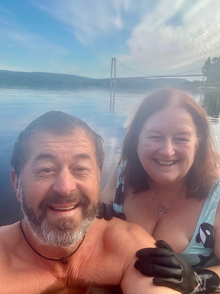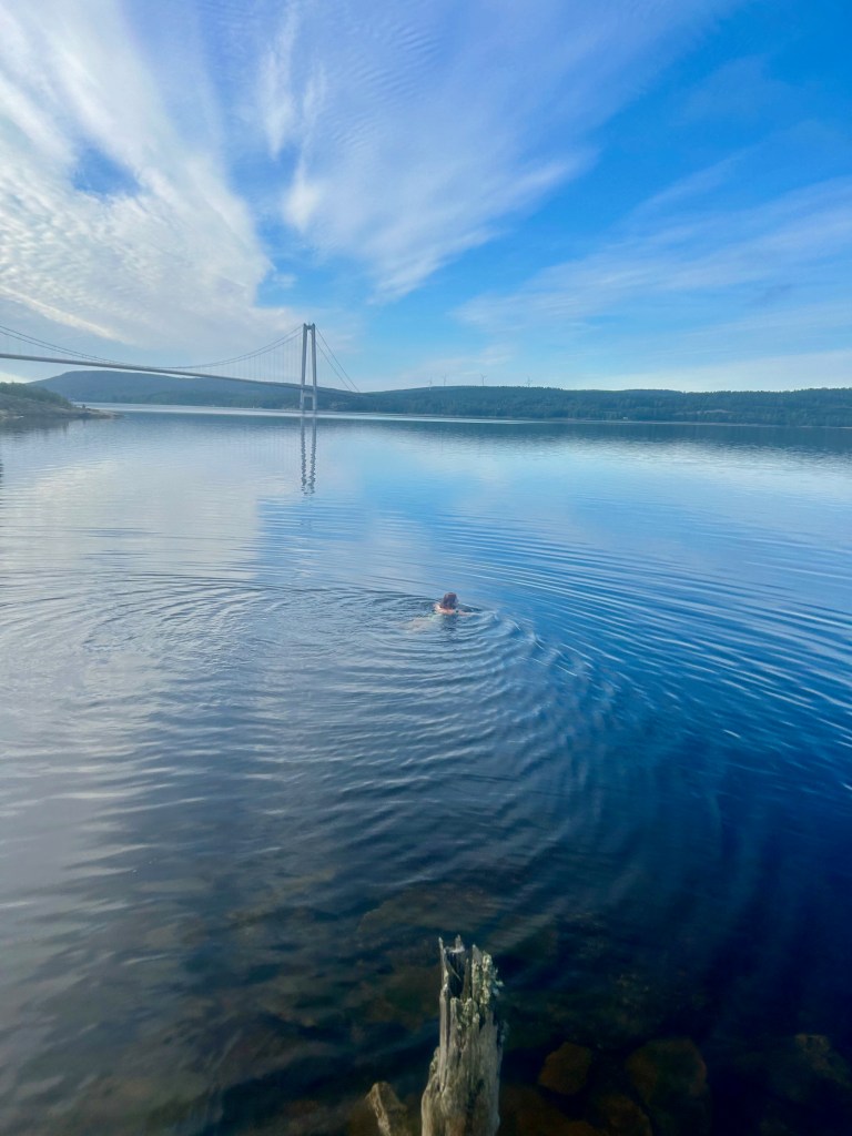 We were both awake early this morning, and were sat on the decking with our coffees just after 6.30. It was so peaceful, and the sea so calm. I got my mat out and had my most scenic yoga practice ever, then we got changed and went in for a swim. The Baltic was not too baltic at 12 degrees. This was the second time for me to swim in this sea; in fact a swim in the Baltic was what started my wild swimming and cold water adventures 5 years ago. Again, hopefully the first dip of many.
