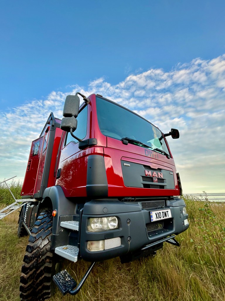 I was still hobbling, but managed to haul myself into the cab by standing on a beer crate and with only a few pitiful moans, so we arranged to set off for the long journey east to Harwich on Sunday afternoon. I was shuffling down the garden path towards Dwti while Lyn started her up. Only she wouldn’t start up. She had a totally flat battery, probably from Lyn fiddling with the Victron settings because our new Starlink set up soaks up so much power. Lyn immediately put her on to charge, and we returned to the house to wait, bearing in mind we have closed the house down, so had no water, fridge, freezer, food etc. It’s all been switched off. We didn’t know if we would need a new battery, so started googling next day deliveries. Luckily, within 2 hours we had enough charge to start Dwti, trusting she would recharge on the way.. We started off on our long trip at 6pm, and got to the ferry at just past midnight. We managed a few hours kip after I had managed to fold my bad back in two to get through the crawl through into the hab.