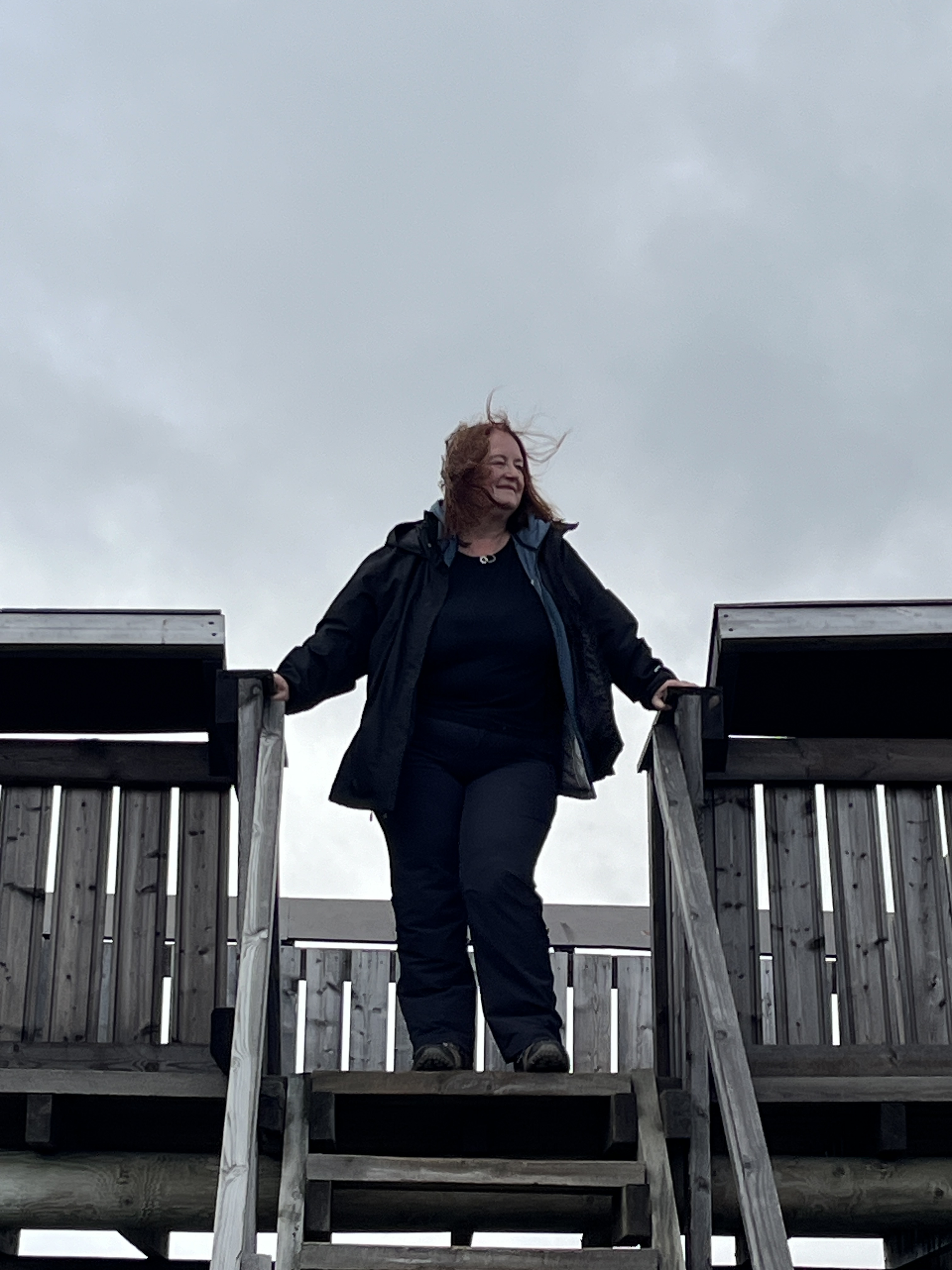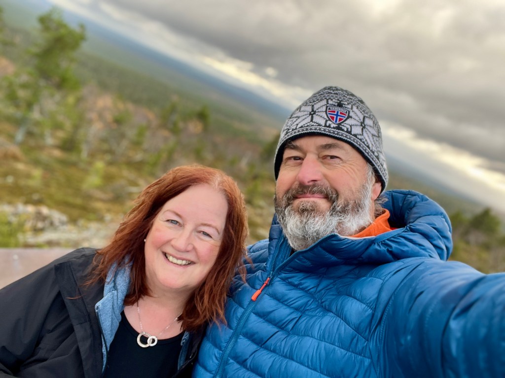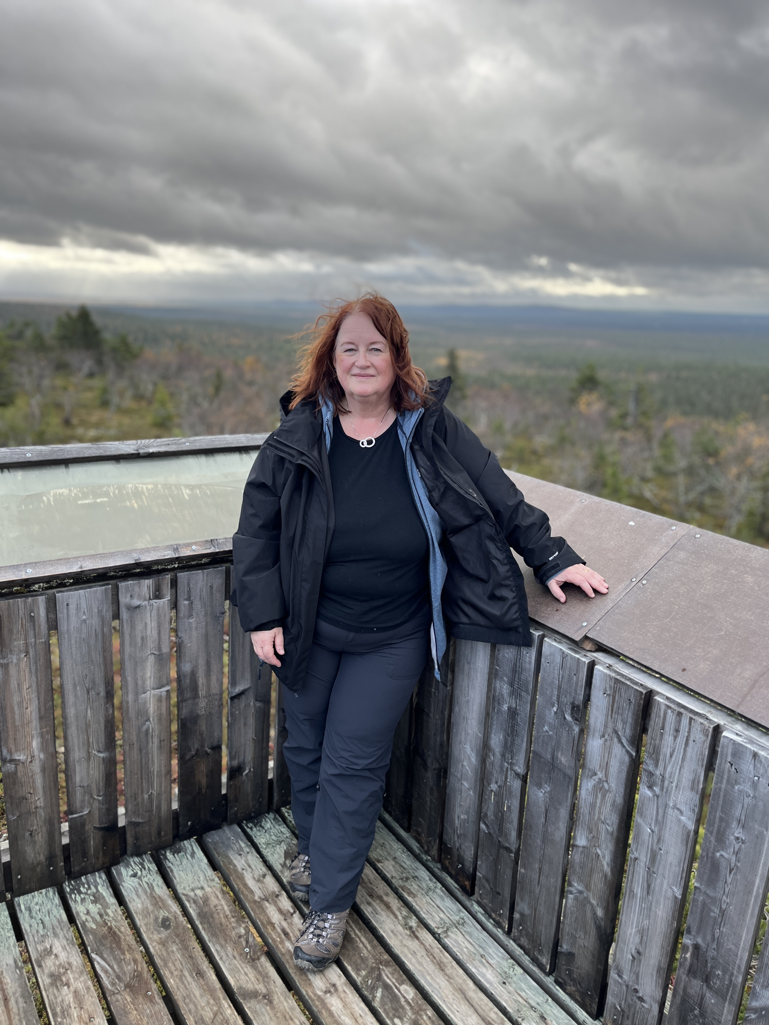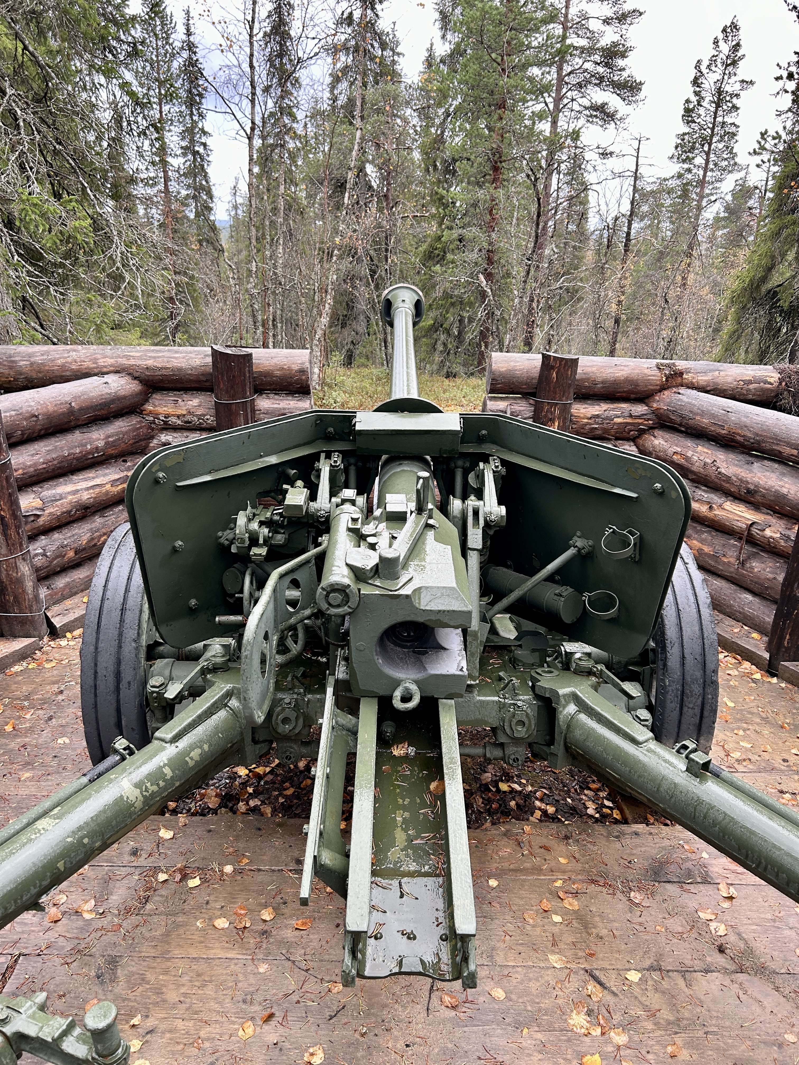 The trails were very well marked, and we passed boards telling us the history of the German defense lines in the area as they tried to protect the Norwegian nickel mines and the route north to the Arctic. We were able to climb into dugouts and look at trenches and even see an anti-tank gun. As this trail finished we carried on uphill towards a viewing platform Lyn could see on his map. The route underfoot was not easy; there were so many huge tree roots and rocks in the way you needed to watch every footstep. I must admit I did huff and puff and the smallest little moan might have escaped my lips from time to time. I eventually made it to the peak and climbed the steps to look out at the 360-degree view over lakes and trees. Many many trees. It was so quiet there, we only saw 2 other people on the trail, going in the opposite direction. It wasn’t the easiest walk for me (totally unfit!) but it was good to get out in the fresh air and move our bodies. A lot of mileage has meant hours sat in the cab, and bad weather has meant hours sat in the hab. The air smelt so fresh, thanks to the thousands of trees.