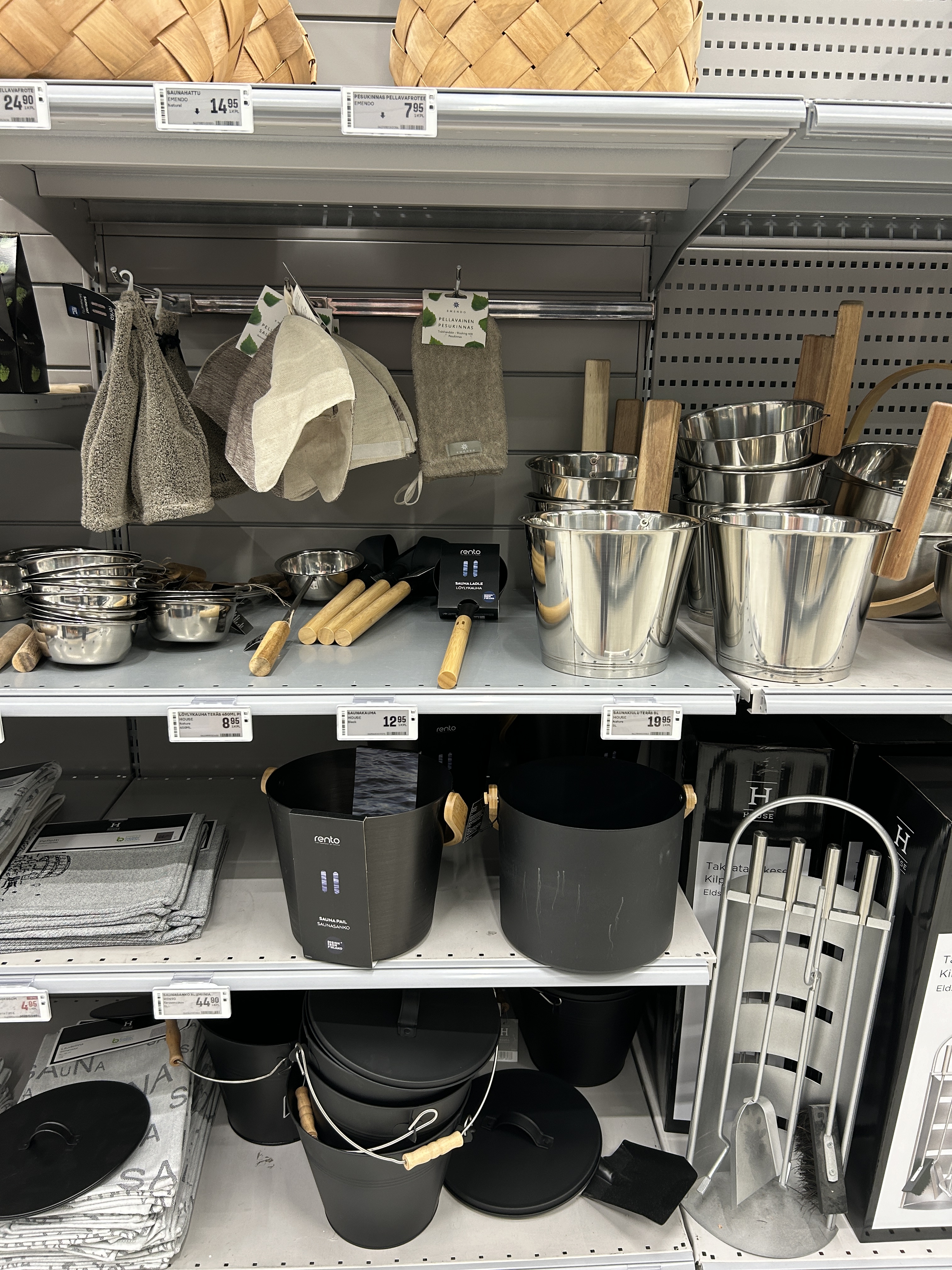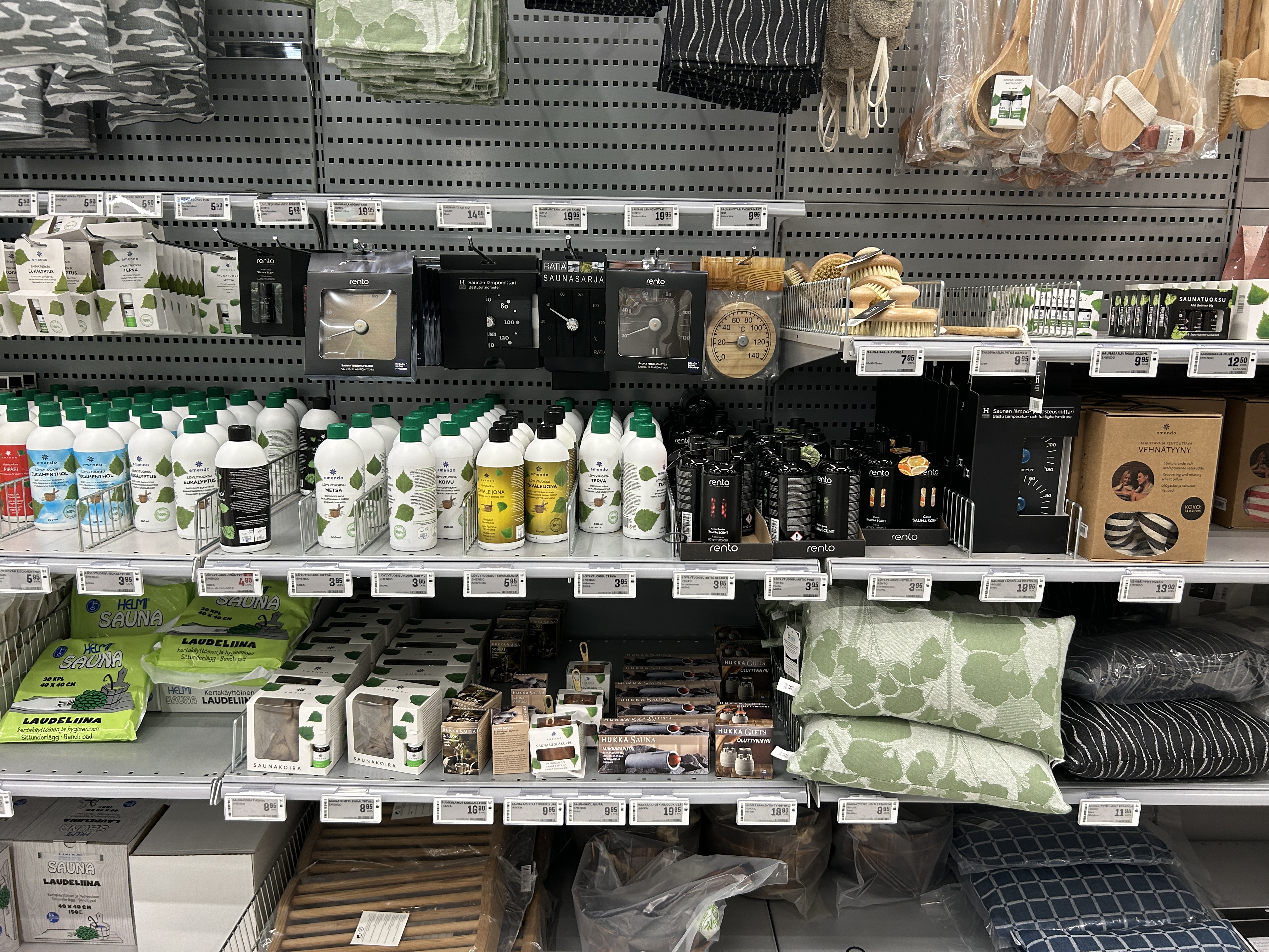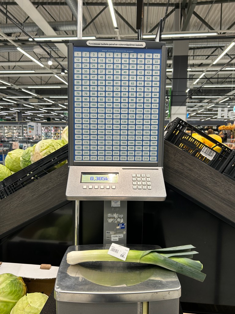 Unfortunately, we had no need to buy a clock for our home sauna as we do not have one, or an ice hockey helmet, but we did have a need for food. All things considered, we were very restrained. Lyn treated himself to some smoked reindeer soup, and we bought some carrot bread rolls, and other necessities that we needed. I bought the most amazing bottle of Bitter Grapefruit mixer for my gin, and let me just add that as a result, a return journey to Prisma is going to be made! They have an interesting way of weighing out the fresh fruit and veg; every item is given a number, and you just place the item on the scales and press that number. So much easier for me than trying to remember the correct Finnish word for a particular variety of carrot, for example, and then get to the scales and have to look up that word that I invariably can’t remember!