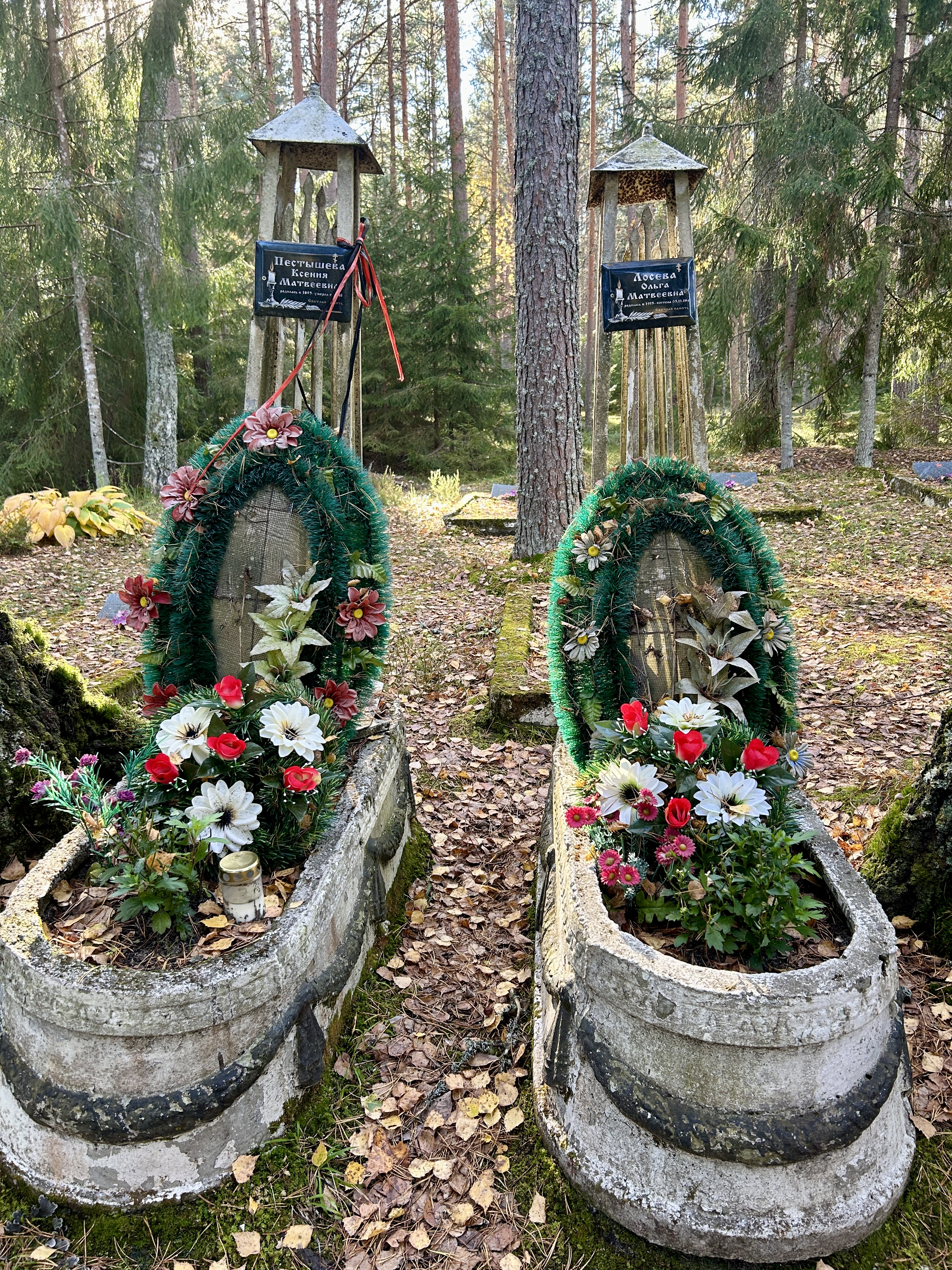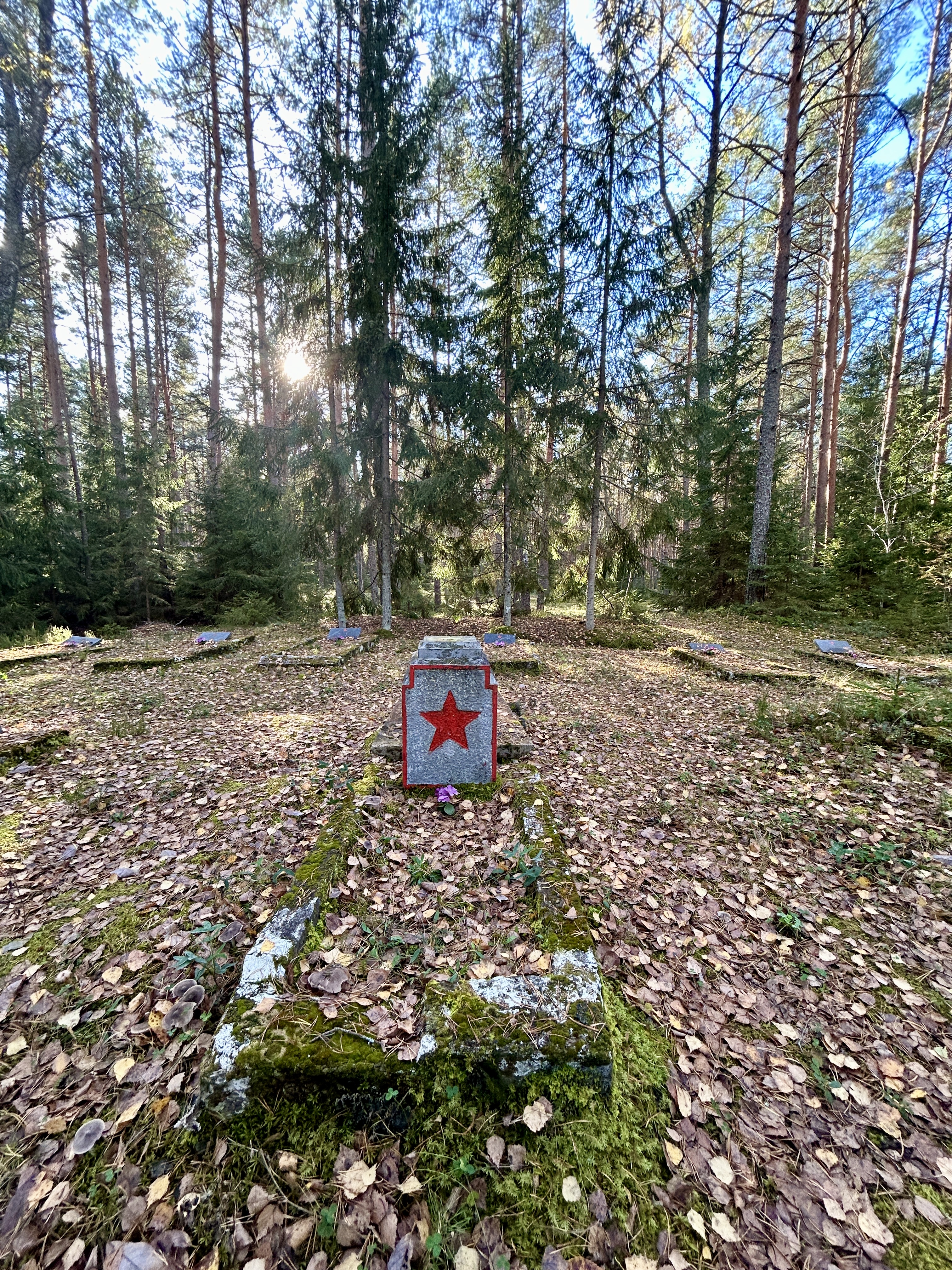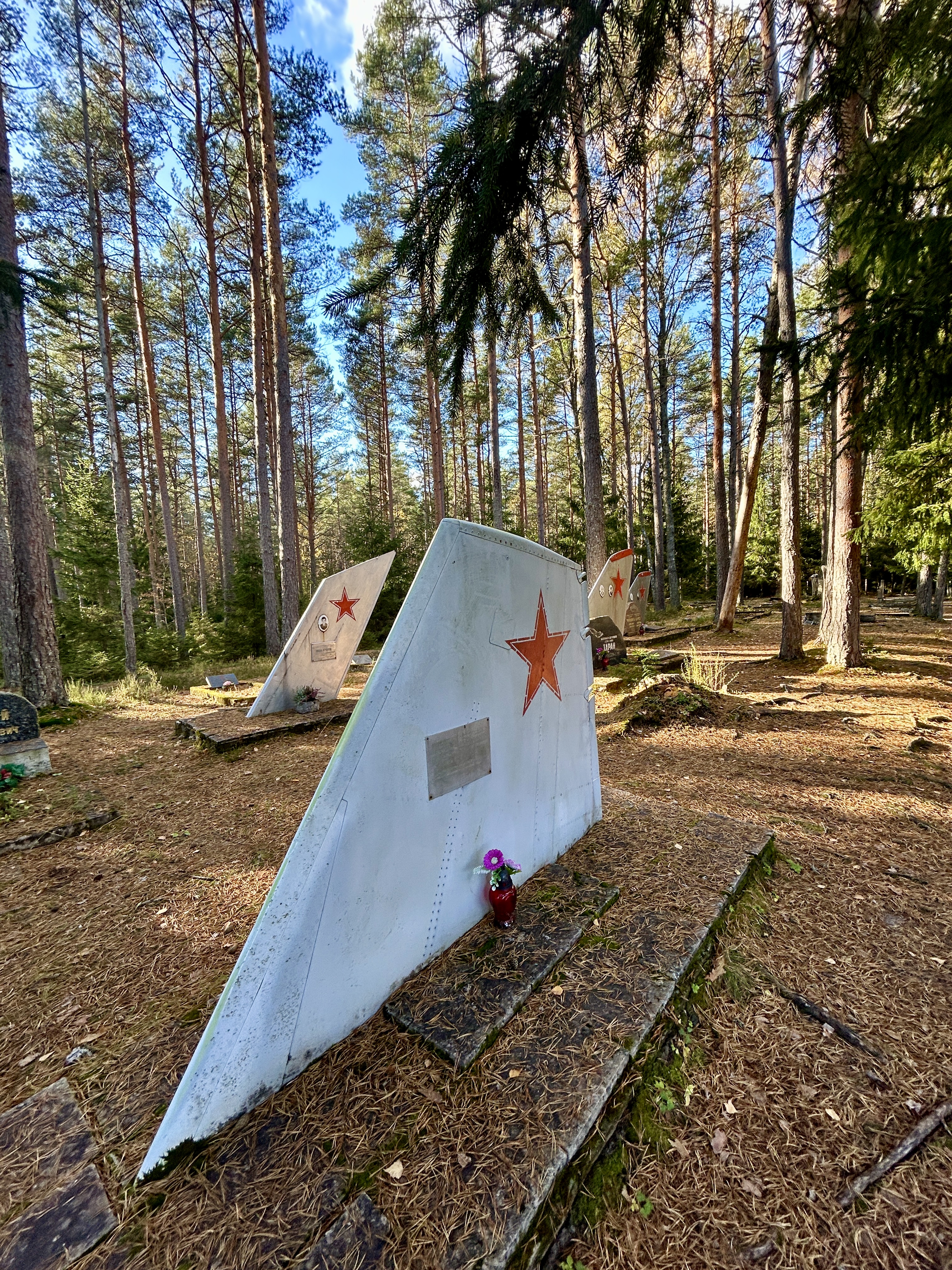 Eventually we got to the first place on our list; Amari Pilots Cemetary. The cemetery is based near the Amari Air Base, and was primarily used to bury pilots and military personnel who served at the base, which was a significant military installation during the Soviet era. The graves feature headstones with stars and other Soviet markers, including Russian inscriptions. Some of the headstones represent aircraft wings, with photos of the pilots. The cemetery appears neglected and left to decay amongst the trees, but it is interesting to visit to understand Estonia’s past.