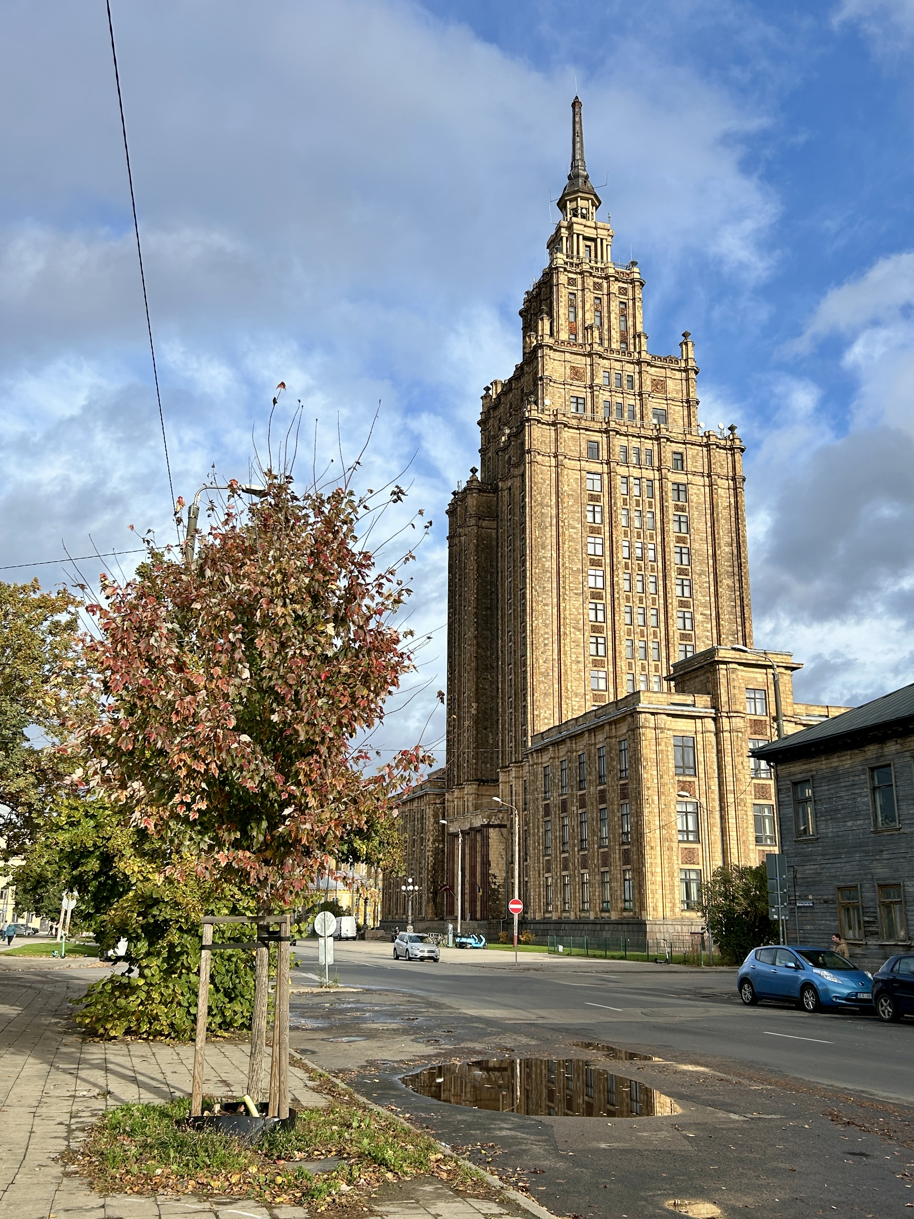The drive in was awful; as per usual when we are trying to navigate our way into a busy capital city. It didn’t help that I had to do the navigating as Lyn’s Sat Nav refused to play nicely, so we were trying to navigate busy roads, avoid non lorry routes and not be bumped out of our seats by the typically bumpy roads. We had to abandon our first park up as it was not suitable; which then led to driving the wrong way down a one way street in front of a gaggle of Latvian police, who stood by and watched. It took a Latvian out sweeping the autumn leaves to shout at us and gesture, resulting in us making a grateful U turn in a narrow road!