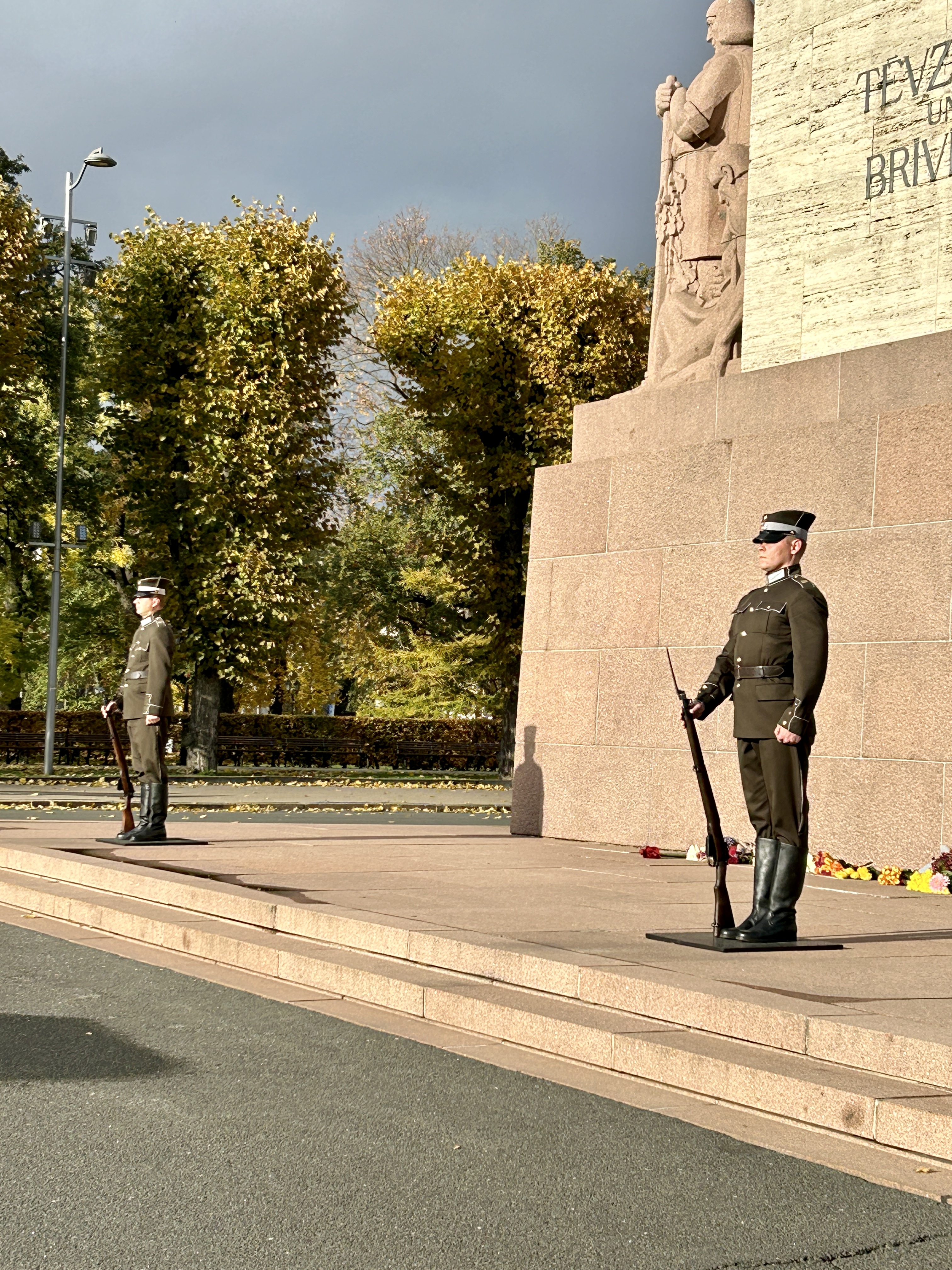 We needed a walk in the fresh air after that so walked through the beautiful park near the Lavian Opera house, which was gorgeous with its autumn colours. This took us onto the Latvian Independence Monument, flanked by two guards who stand perfectly still for a hour at a time.