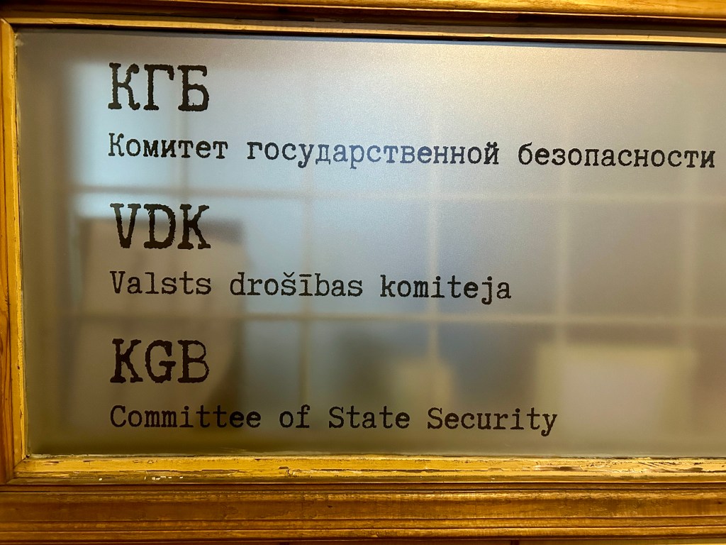 We crossed the busy road to the Corner House building opposite. This was going to be interesting. We had a guided tour of the KGB headquarters and cells in Riga. This building is a stark reminder of the brutality of the Soviet occupation and became infamous as a site of interrogation, torture and imprisonment between 1940 to 1941 and from 1944 to 1991.