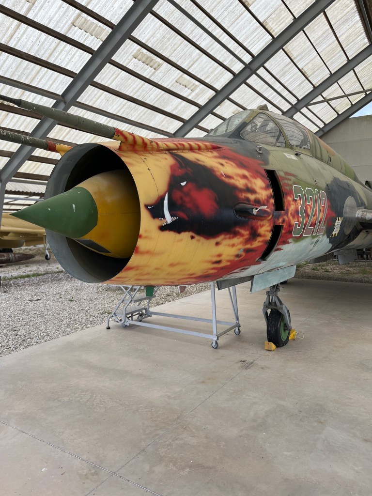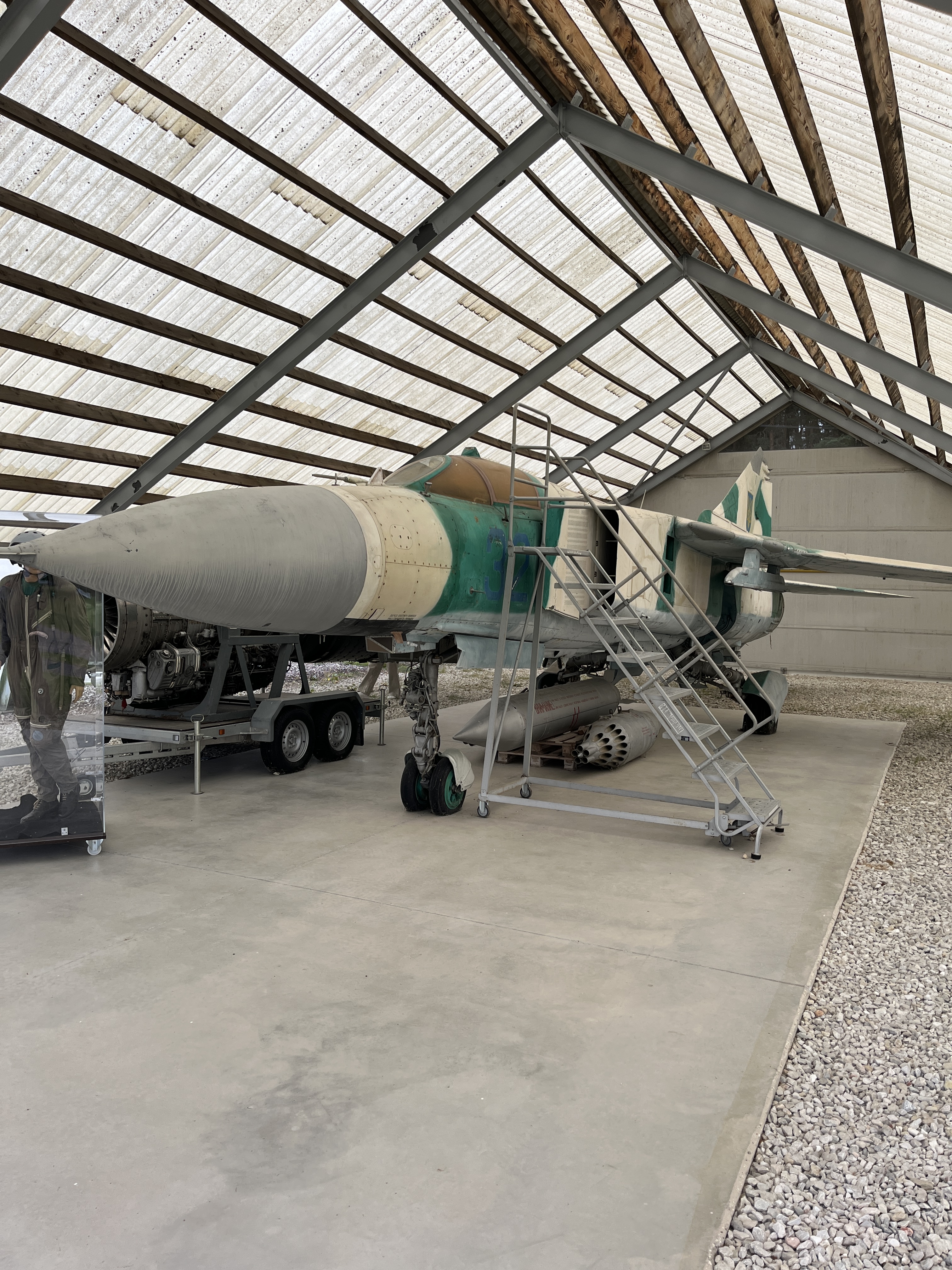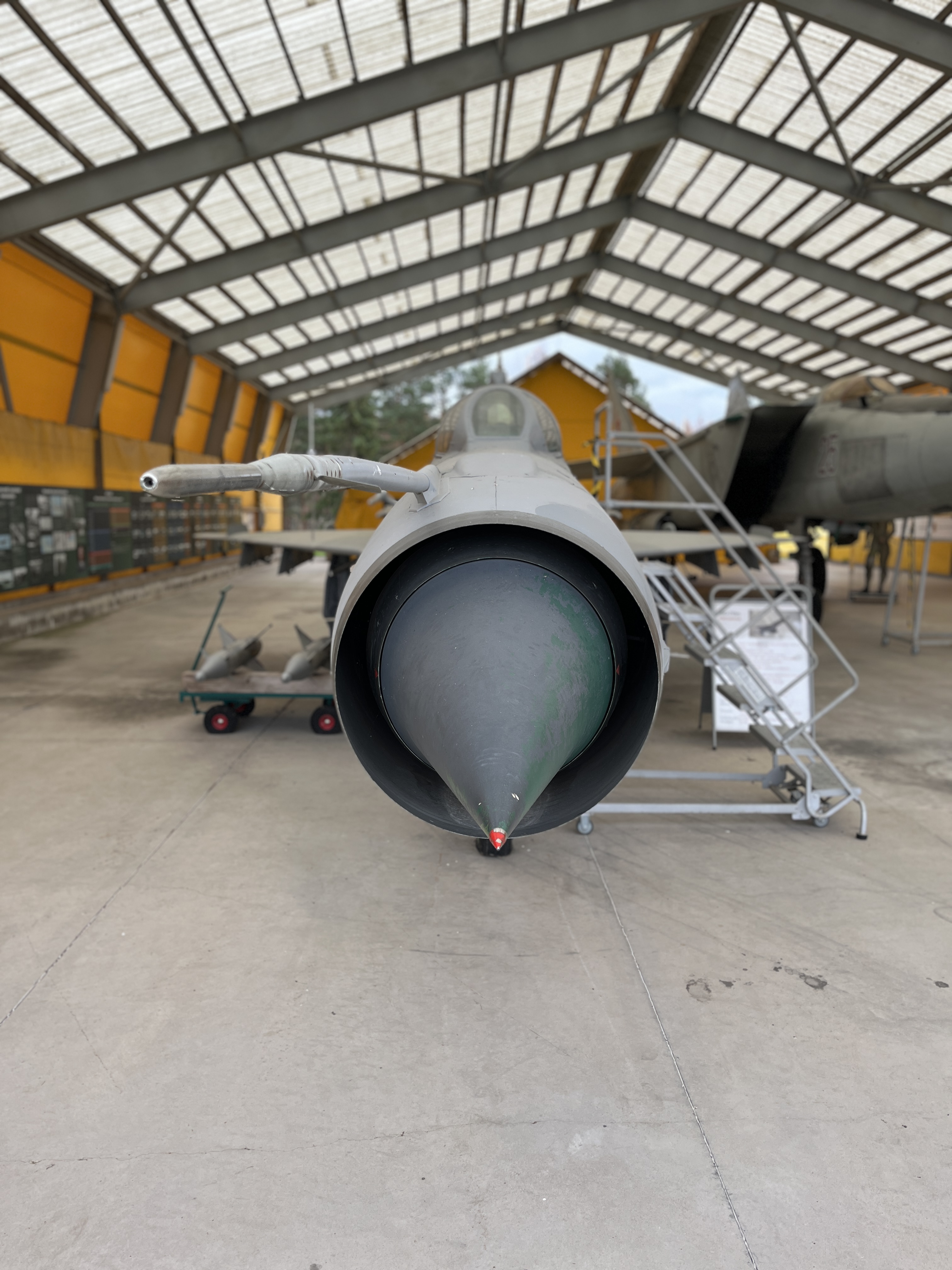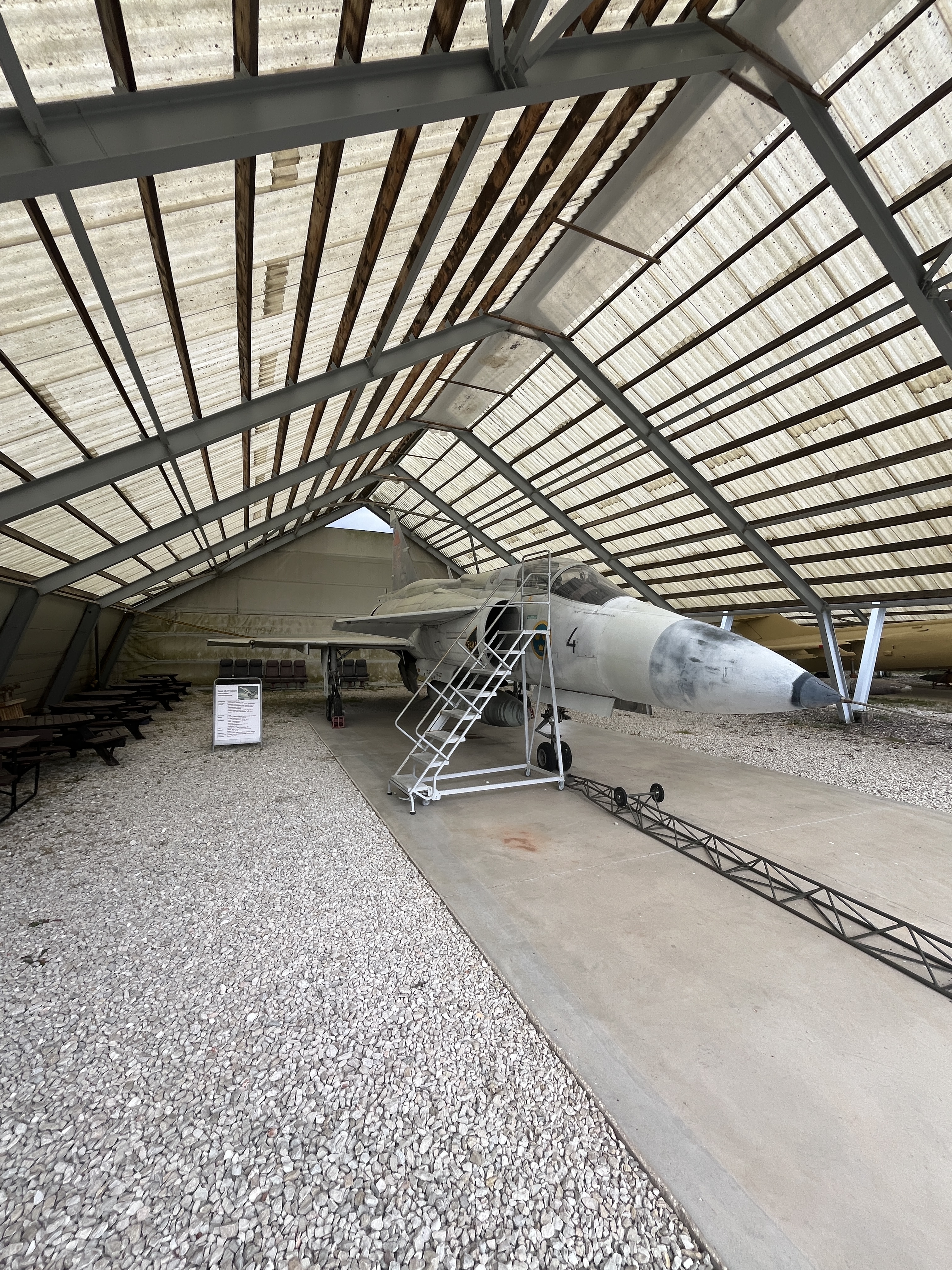 Its first flight was in 1964, and at a max speed of Mark 3.2 (3,470km/h) apparently, the fastest production aircraft in the world. This thing is ALL engine…. Just air in and air out ….. With a 36t take-off weight and an empty weight of 20t, it could carry a lot of armaments. A huge aircraft that dominated the little MIG-21 parked next to it. Looking into the cockpit was so fascinating.