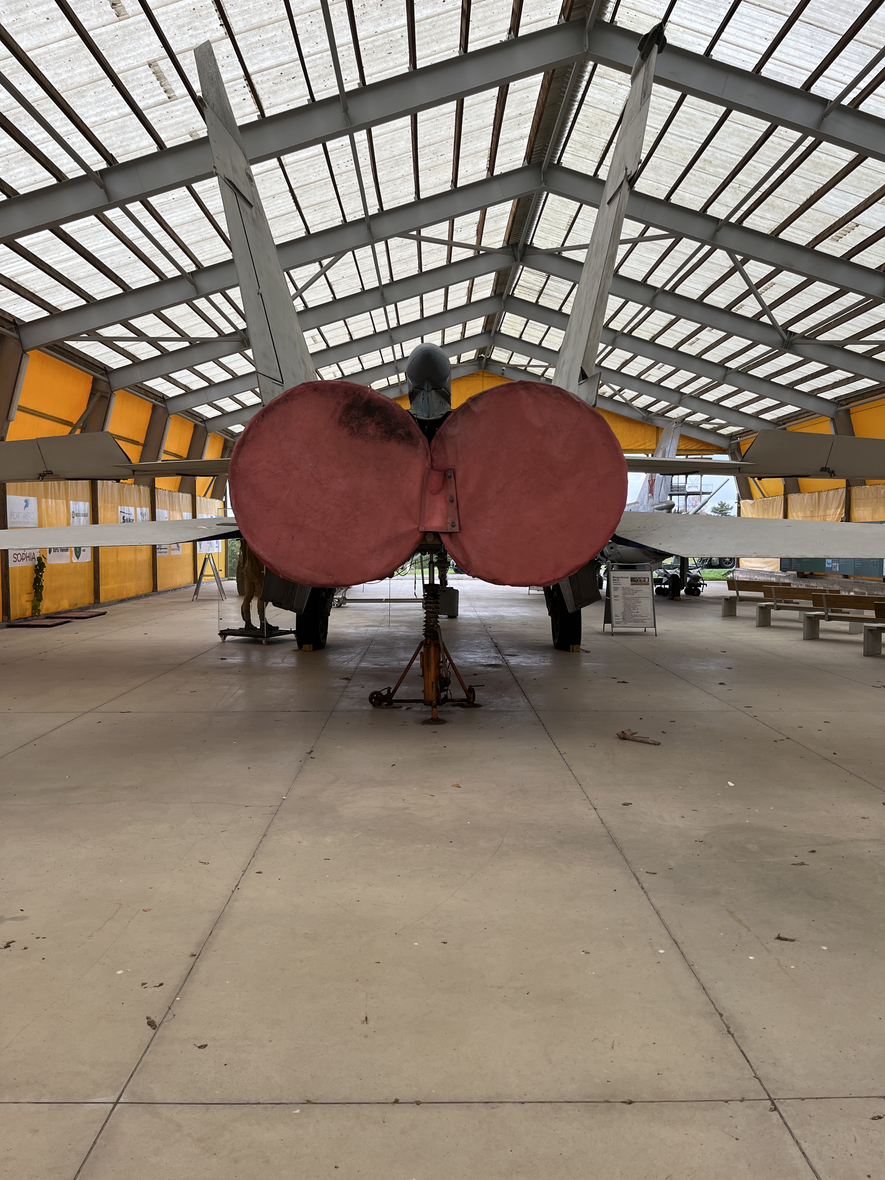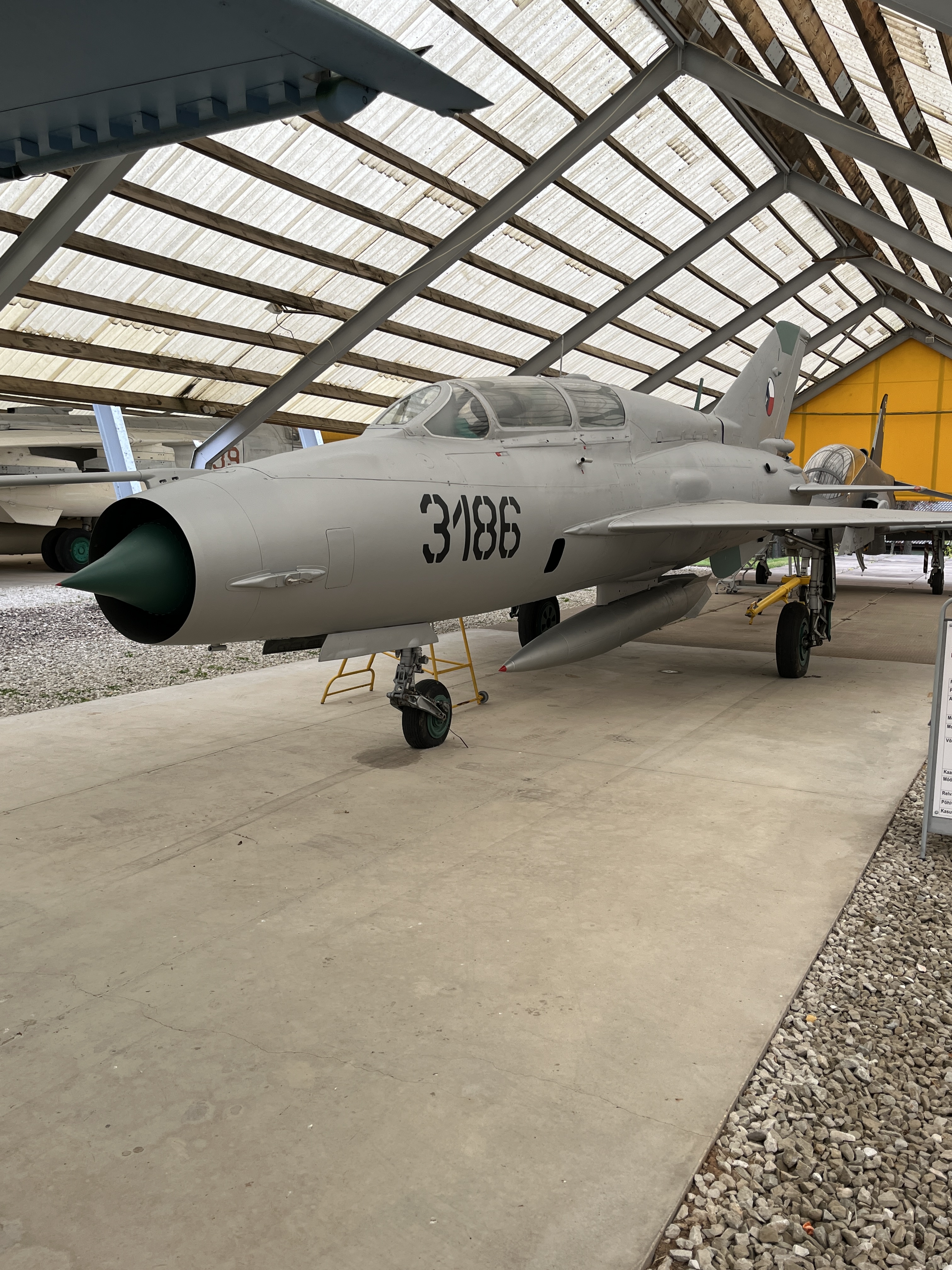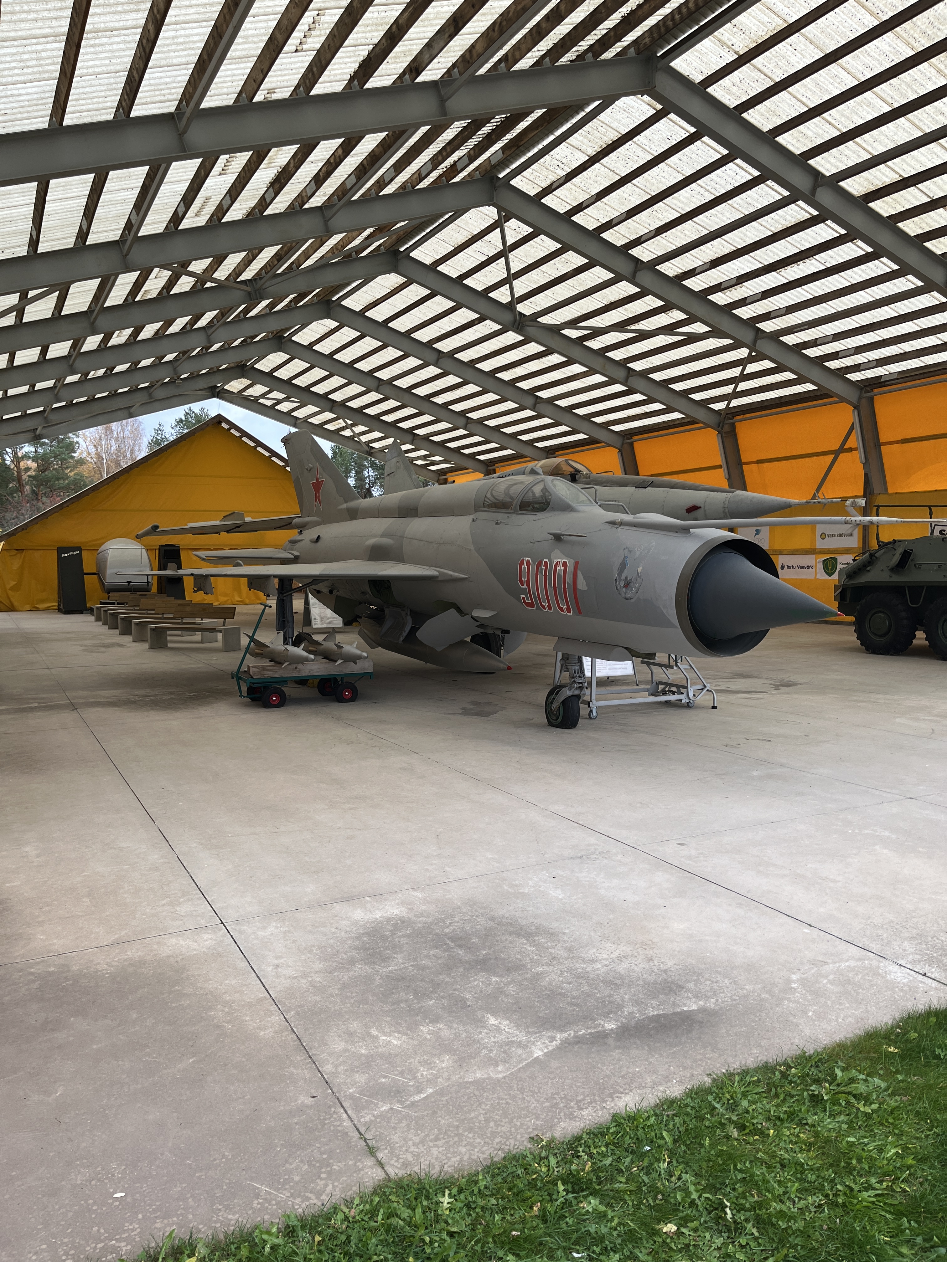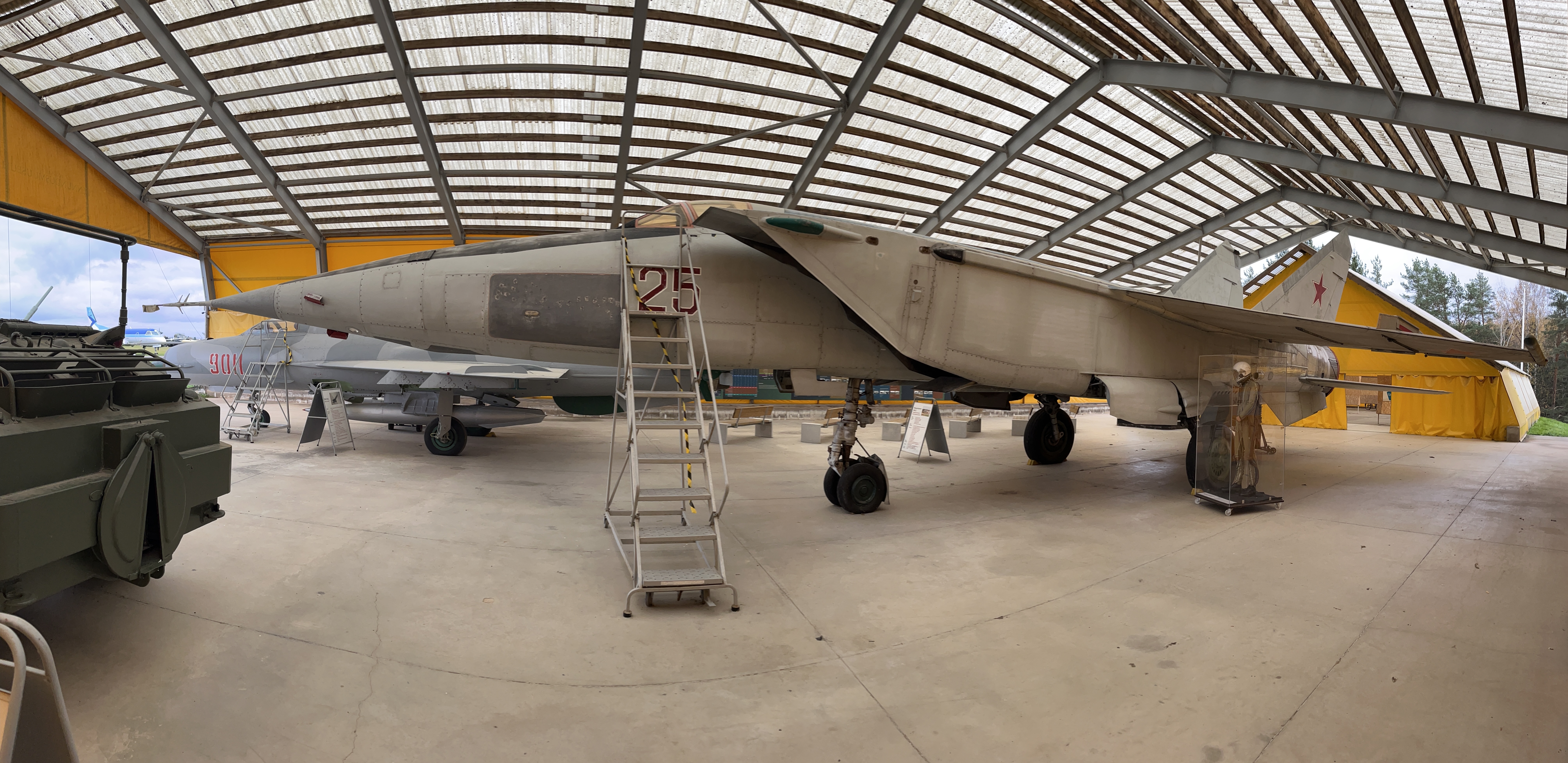 Its first flight was in 1964, and at a max speed of Mark 3.2 (3,470km/h) apparently, the fastest production aircraft in the world. This thing is ALL engine…. Just air in and air out ….. With a 36t take-off weight and an empty weight of 20t, it could carry a lot of armaments. A huge aircraft that dominated the little MIG-21 parked next to it. Looking into the cockpit was so fascinating.