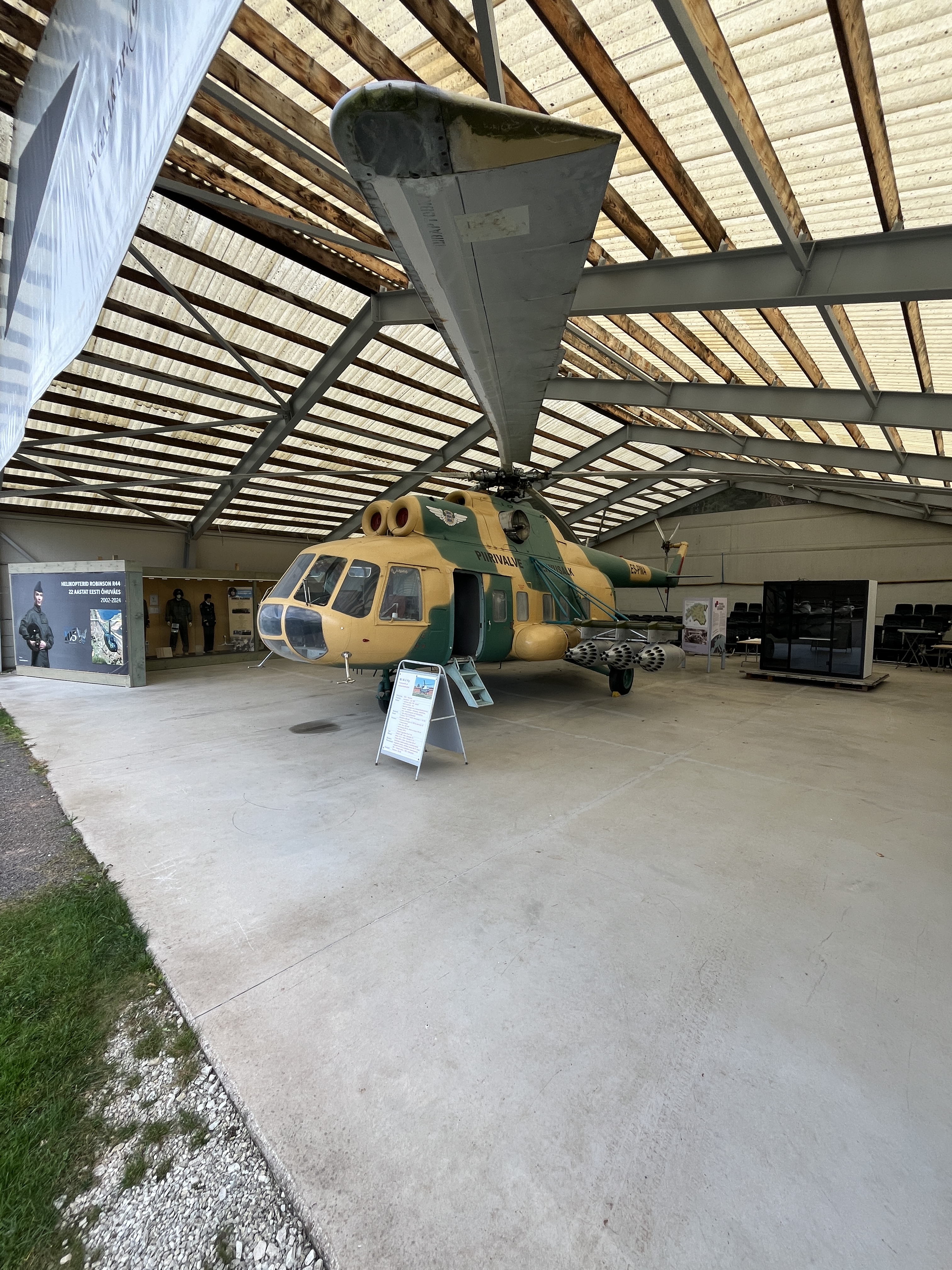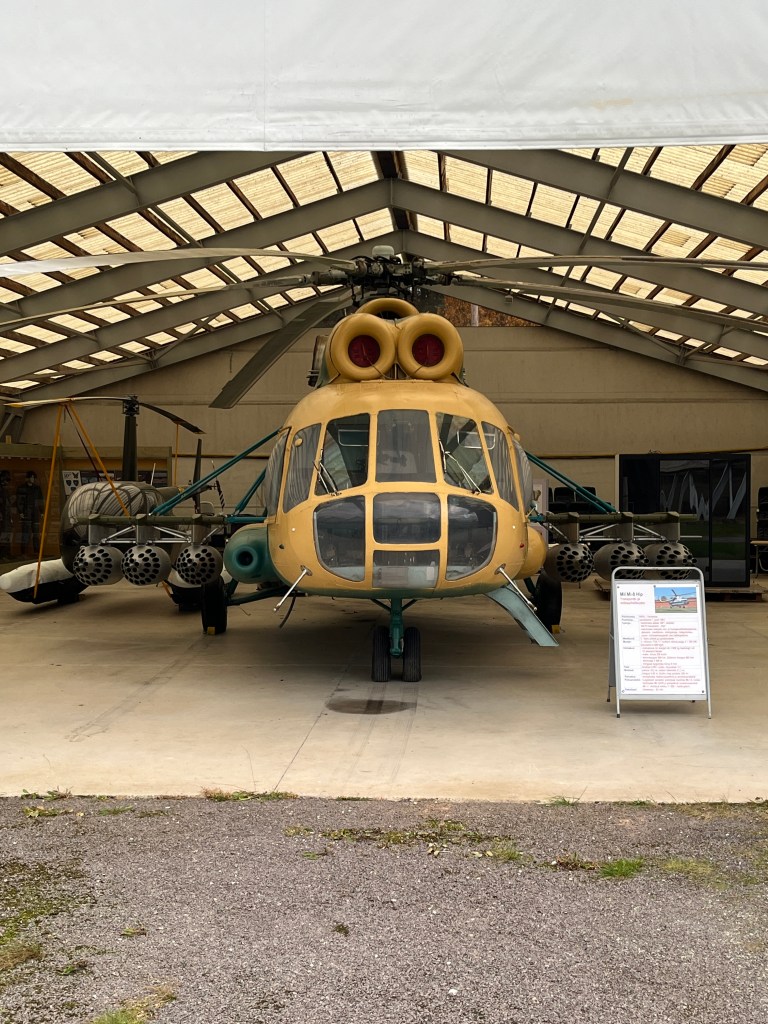From the little Hoodlum I walk around the corner to find this beast MIL MI-8 Hip, NATO name HIP. This has to be the biggest helicopter I have ever seen it just looks and feels raw power. The rotor diameter is a mega 21.2m There were thousands built and they were used for many things, being able to carry 5t of cargo, on top of it’s 7t dead weight. The cockpit was open and was so basic, I am seeing a difference between East and West designs. These things carry a hefty punch and when you tap any surface they give off a dull thud, not a ping or echo you will find off a Western aircraft. You get the feeling they are designed to operate in harsh conditions and can take a knock or two.