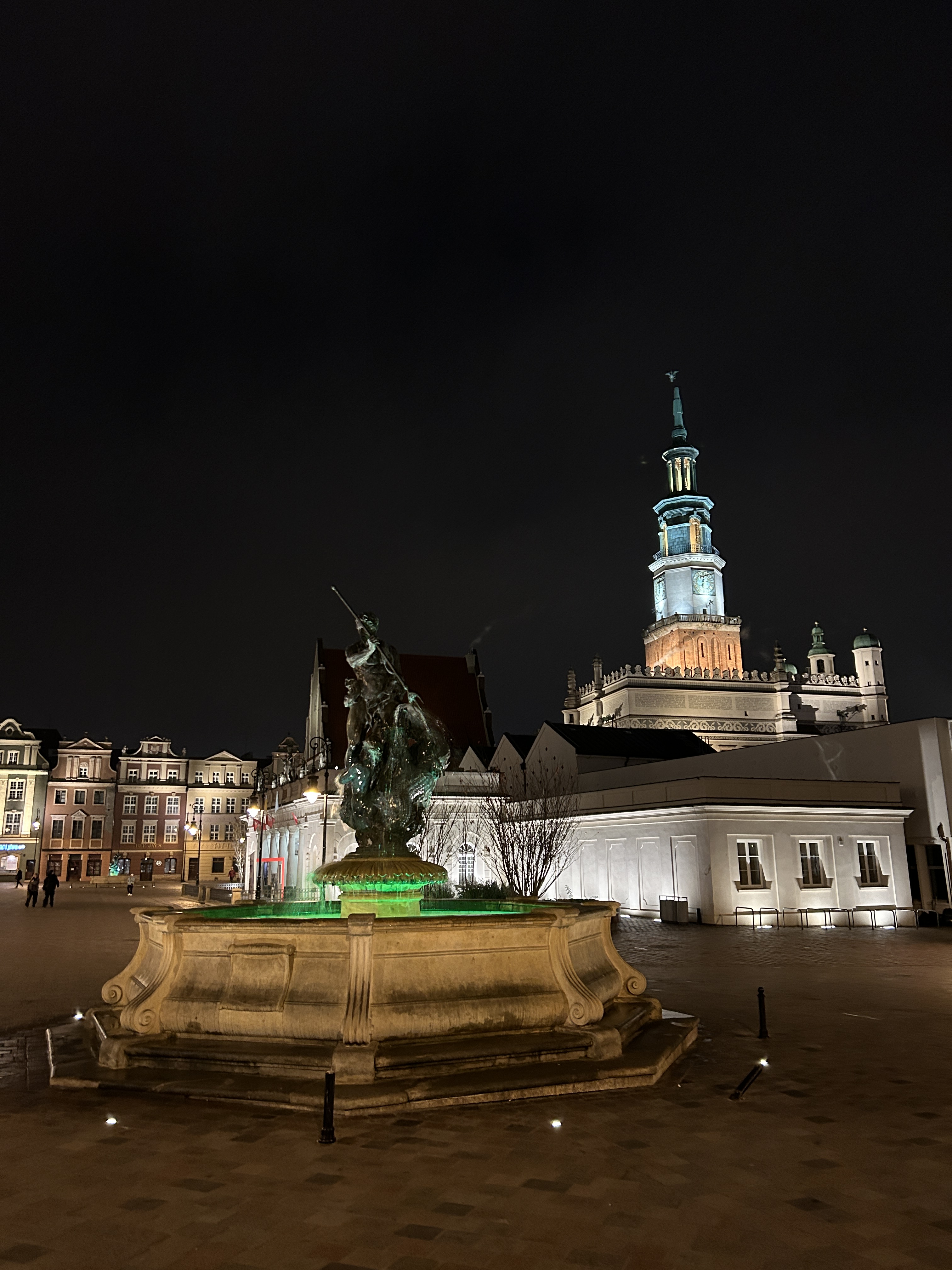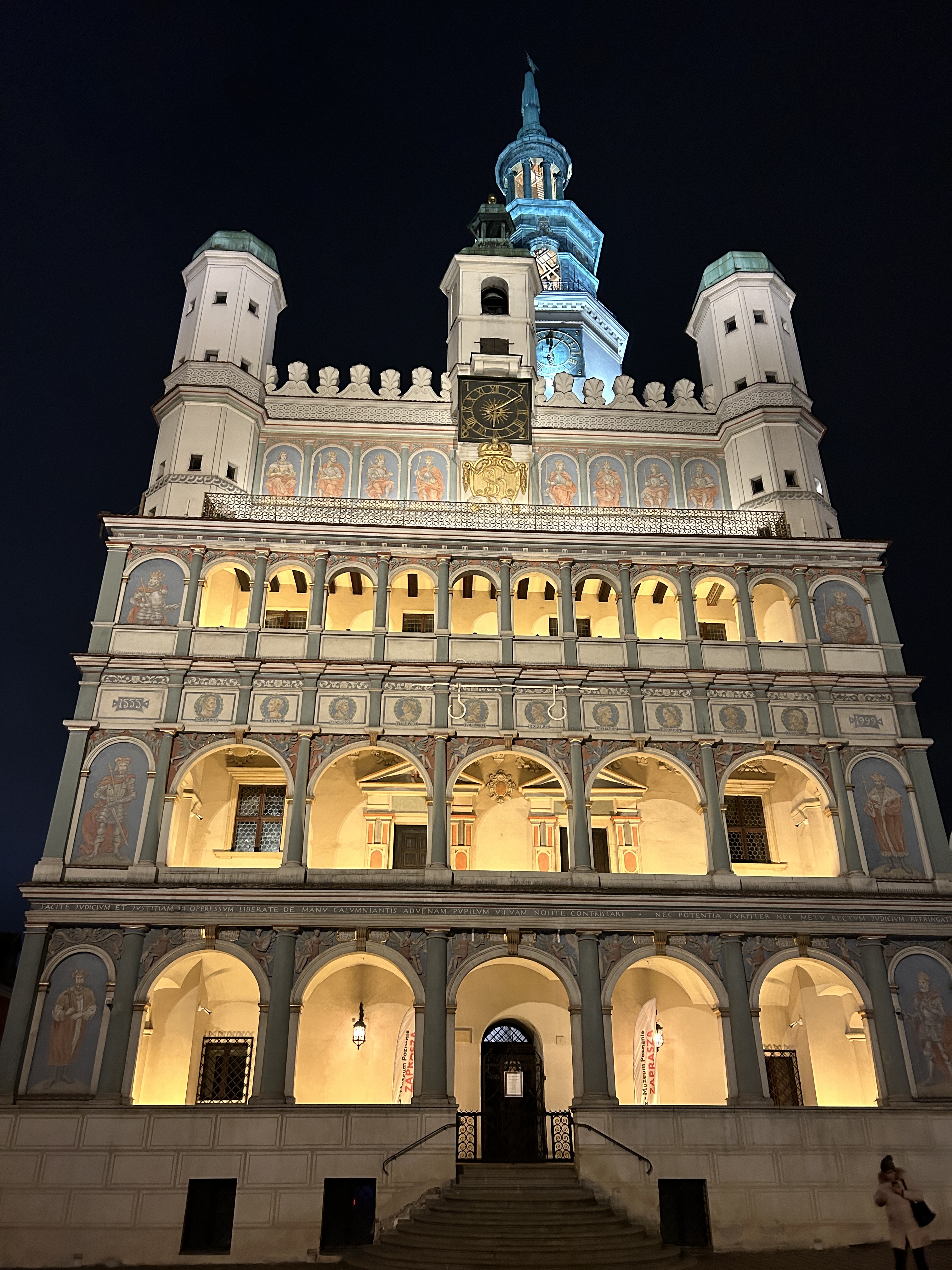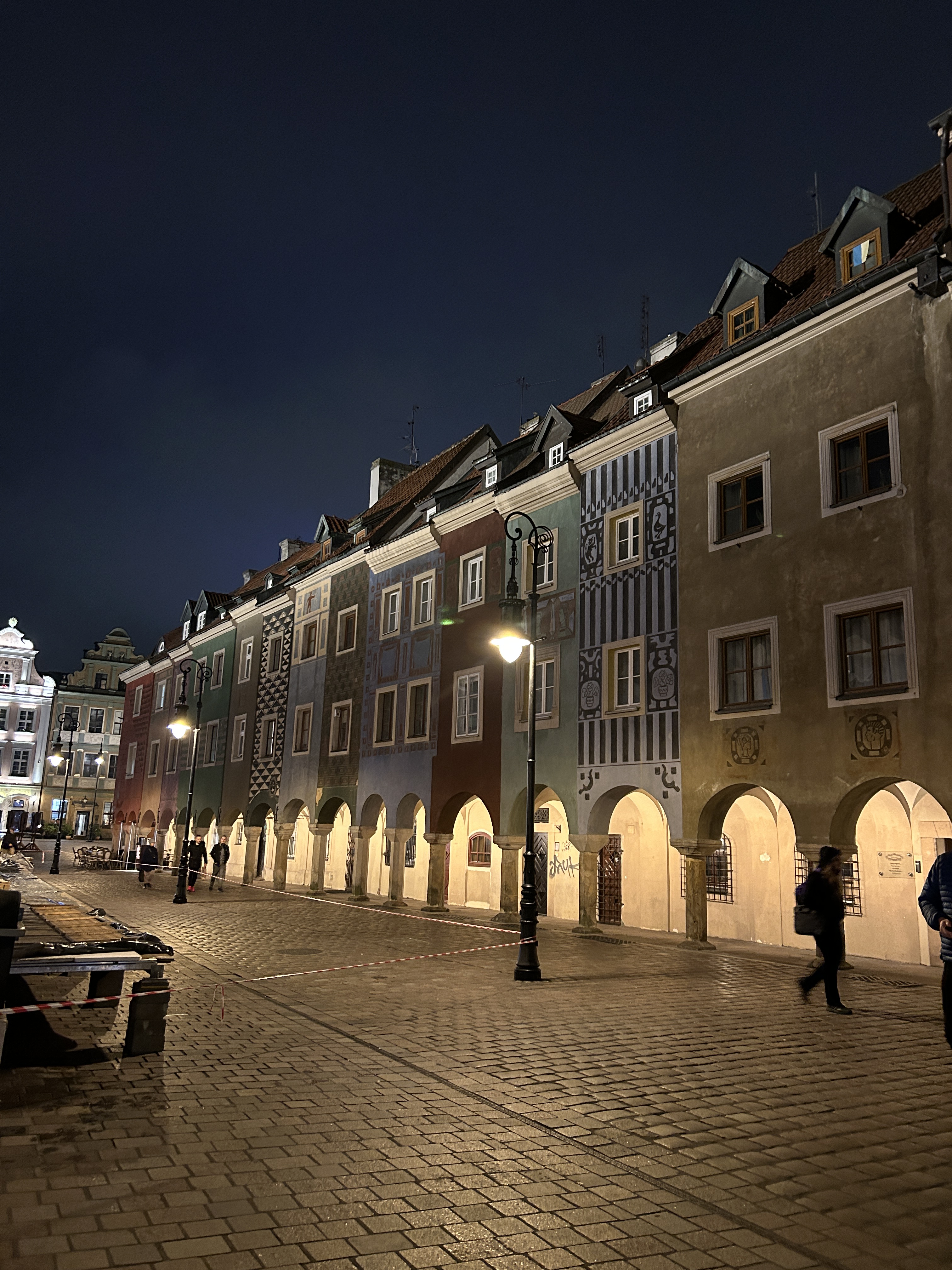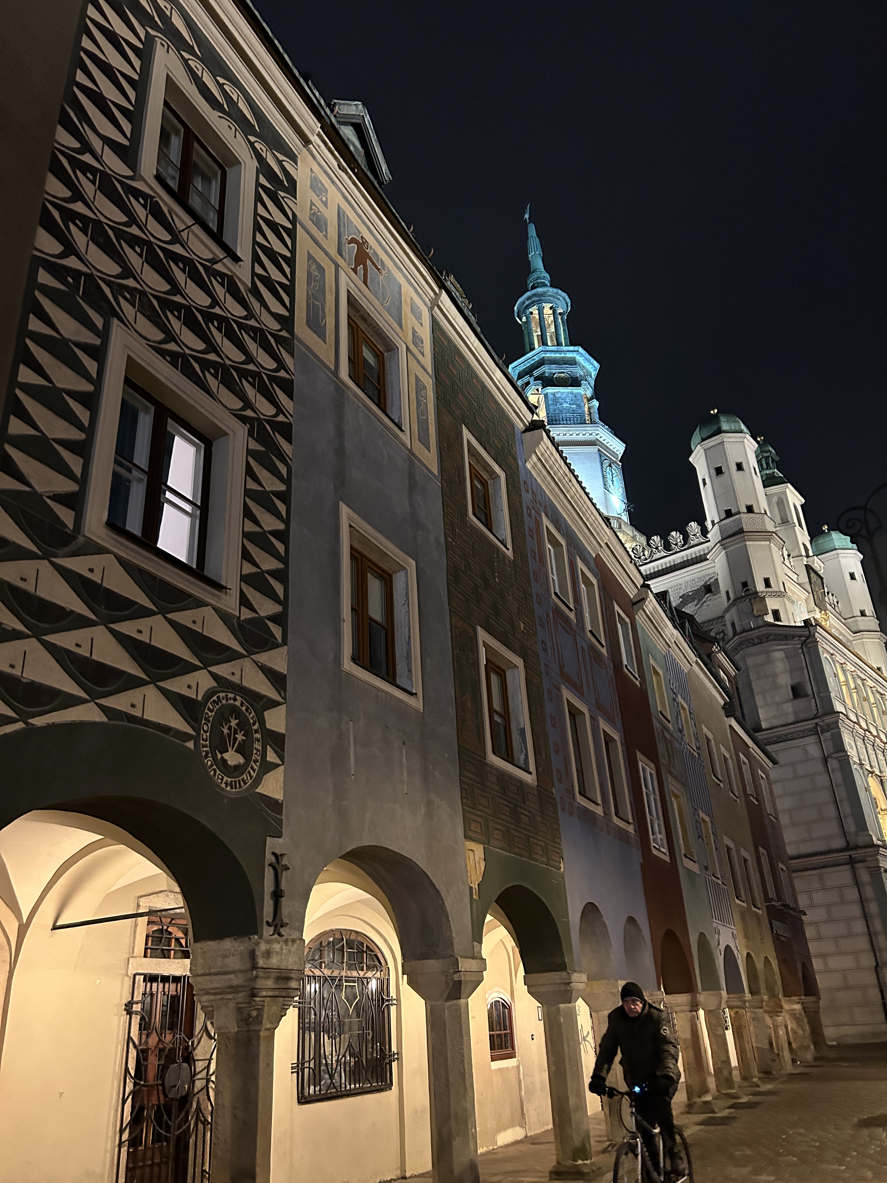 We were sad to leave Gdansk but left feeling we had really got to know this lovely city (and its cocktails!) We headed off to one last Polish city before leaving Poland. Poznan ended up being one of those OMG cities! How can a city I’ve barely heard of be so beautiful? Why isn’t everyone flocking there? How many more hidden gems are there like this, and how do I get to them all? So many questions! We only had time for a brief evening stroll around Poznan, but the buildings in the Old Town are amazing! It actually has the biggest market square in Poland at 141m square, dating from 1253. The 16th century Town Hall is one of the most beautiful buildings I’ve ever seen. Every day at noon two famous mechanical goats appear on the clock and butt horns 12 times. We didn’t get to see it, but think we’ll definitely be back to watch them. The merchants houses next door are also gorgeous, I wish we had been able to see them in the light. The market square was very busy as they were getting ready for the Christmas market, and were putting an ice skating rink down.