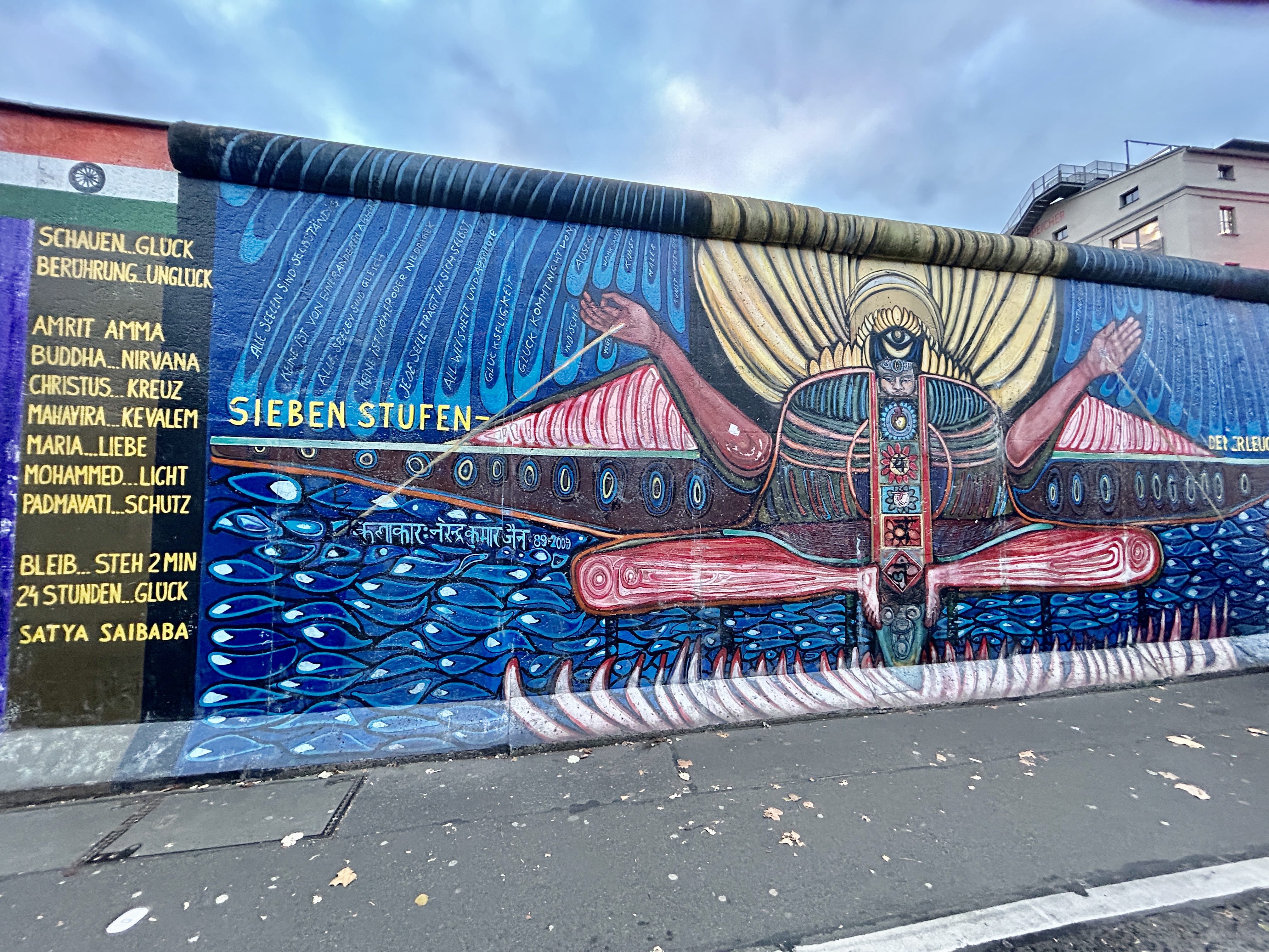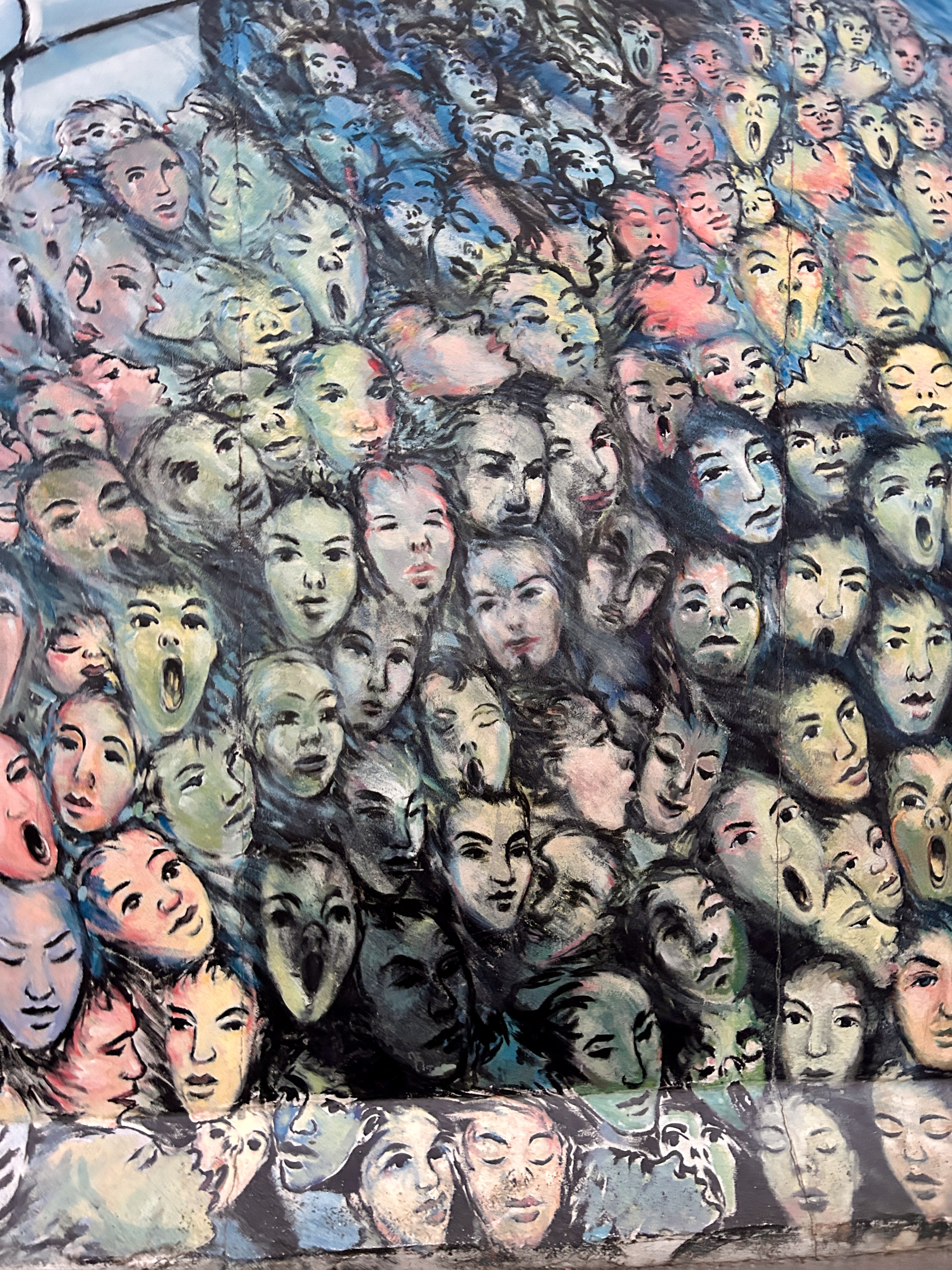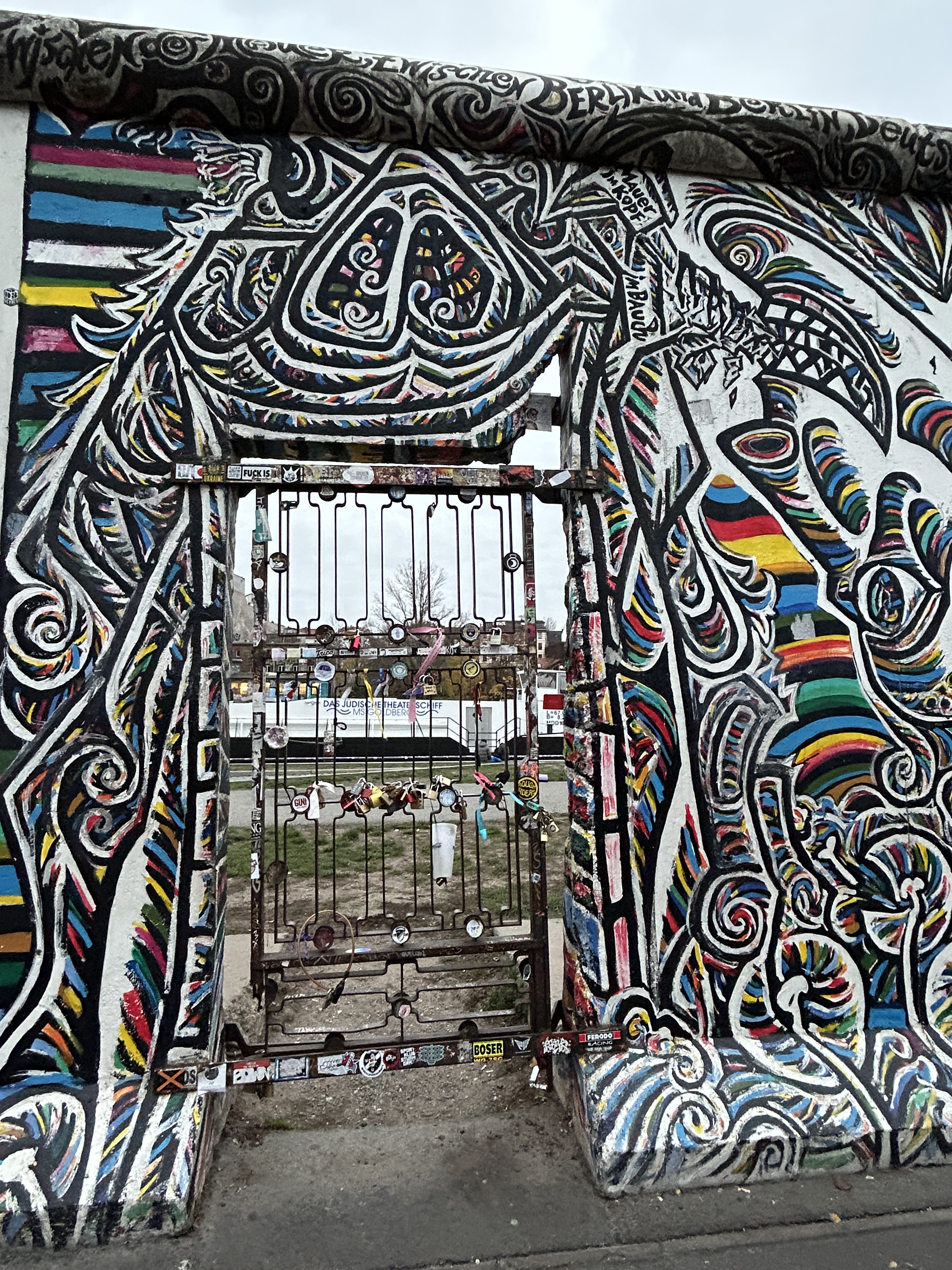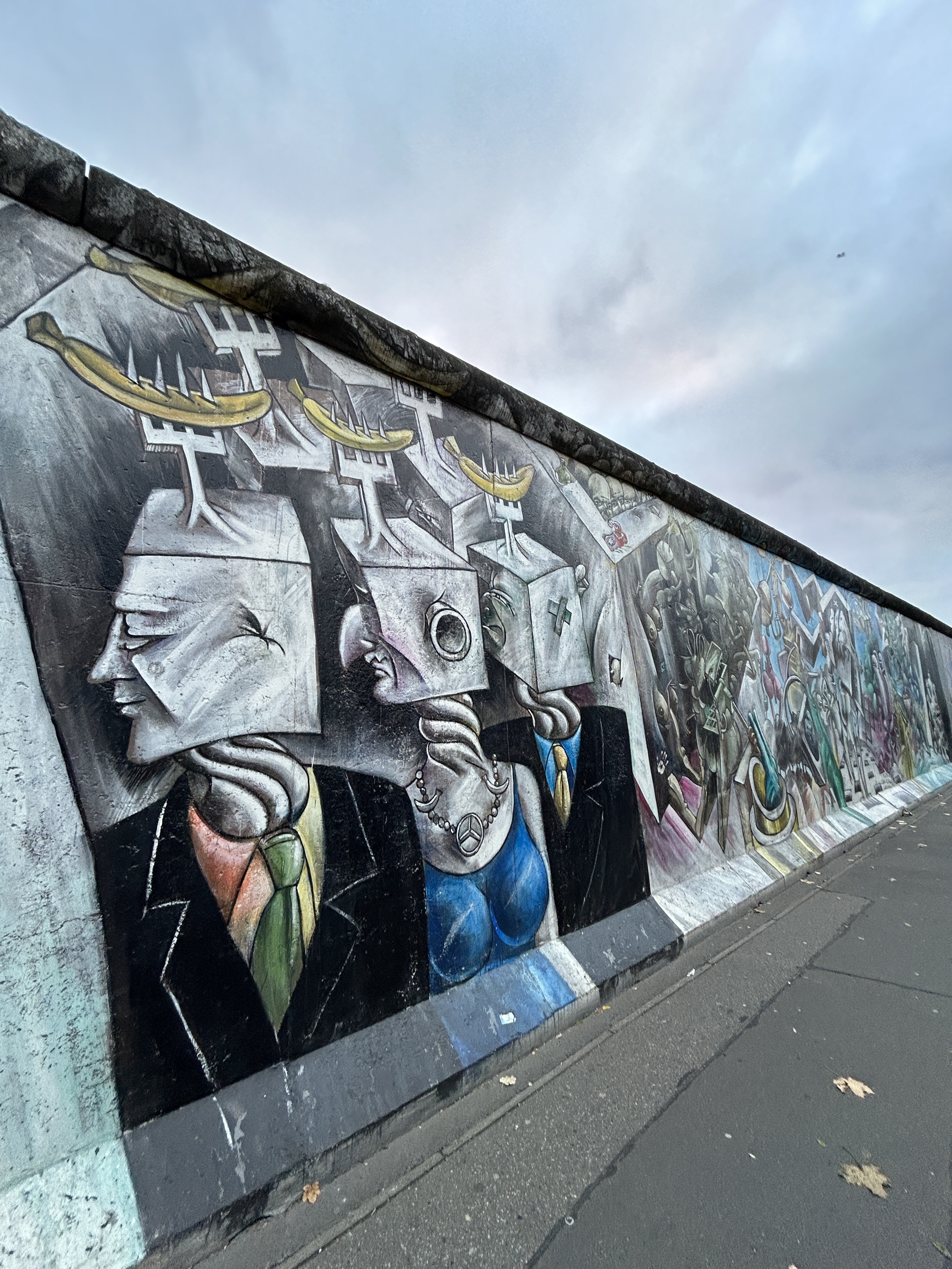 There was a piece of the wall near Checkpoint Charlie, but we went to the Eastside Gallery to see the longest section of the wall which has been transformed into a globally recognized open air art gallery featuring murals and street art. It spans 1.3km (0.8 miles) making it the longest open air gallery in the world. The murals were painted by 118 artists from 21 countries. It features the iconic “Fraternal Kiss” by Dmitri Vrubel depicting a kiss between Soviet leader Leonid Brezhnev and East German leader Erich Honecker. This was by far the most popular part, with crowds trying to get their “Instagram selfie” next to it.