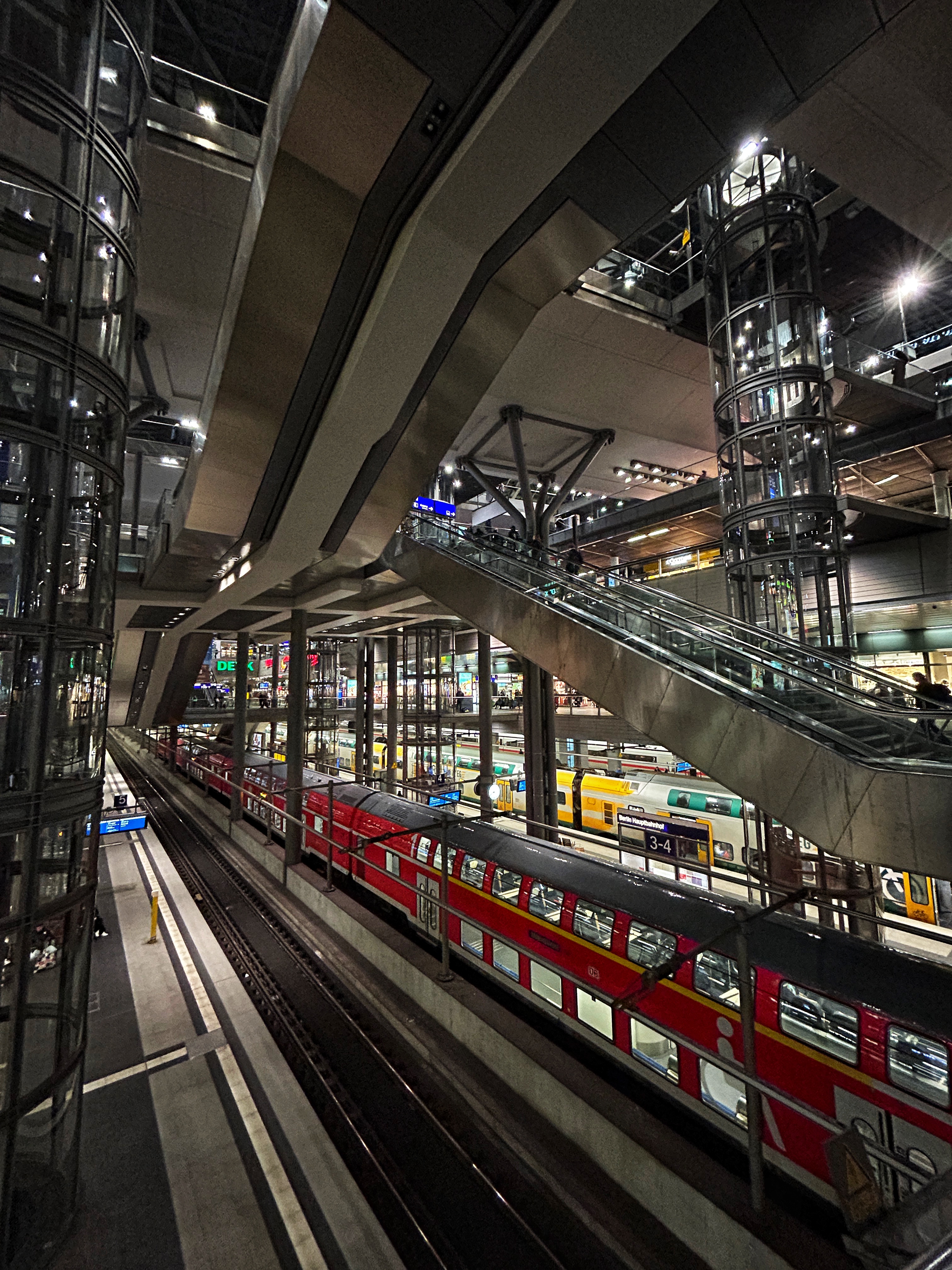 Our main reason for staying in Potsdam was for easy access to Berlin. Lyn had visited Berlin before with work and loved it, but this was to be my first time. The transportation system here, like so much of Europe, is excellent, and shows how lacking the UK is. We paid around £9 each for a 24 hour ticket that took us on a tram from the park up (92), to the main station in Potsdam then on a regional train to Berlin (S7), then all the metros, trains and buses in Berlina as well as all modes of transport in Potsdam. We couldn’t fault it. Signs and announcements were in English as well as German, and the stations were safe, clean and well organised. The trains were fast and some were double storied. All the information on the trains is so clear, telling you on screens in the trains what connections by bus, metros and trains are avaiable at each station. The main station is Berlin was like something out of a futuristic sci fi film, all glass domes, steel and glass round elevators, and multiple levels.