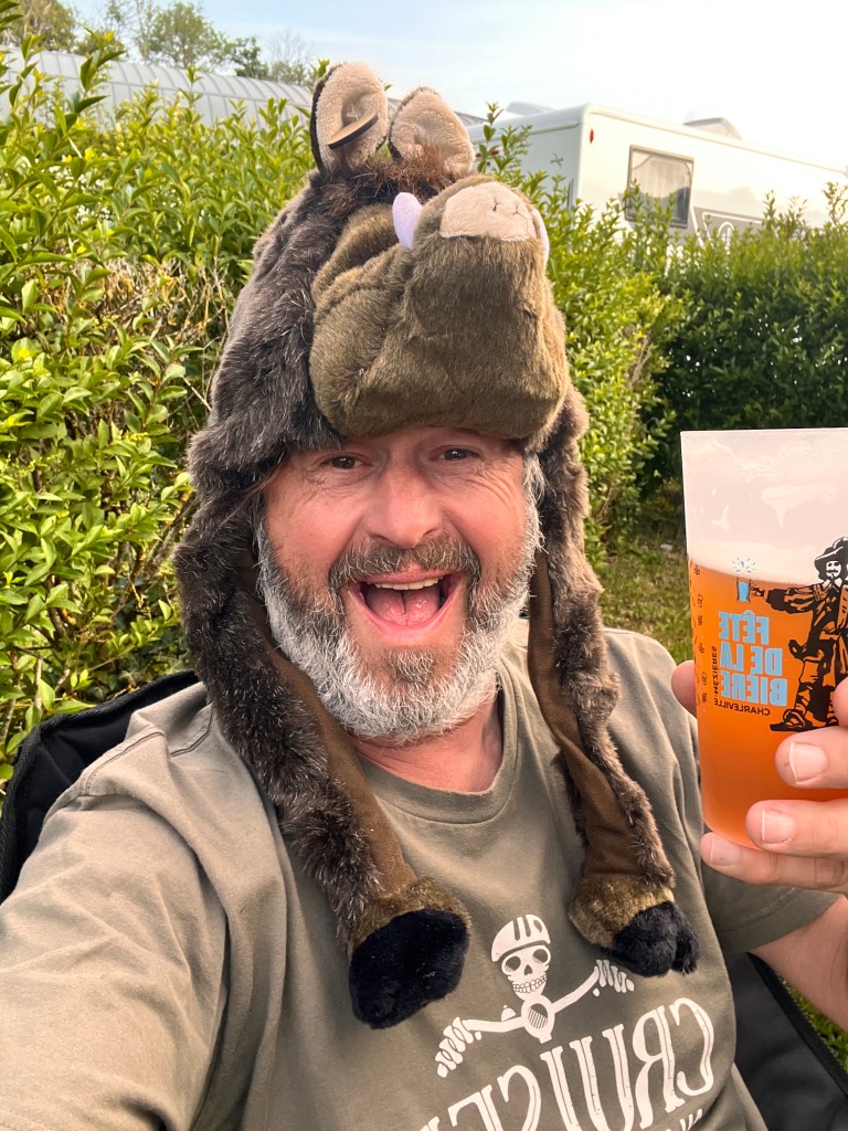 Lyn, needless, to say, stuck to the beer. He found his favourite beer right at the end of the afternoon, and quickly made friends with the owner of the brewery, who gifted him a boar hat, in the name of “la promotion!’ Only Lyn could rock a furry boar’s hat on a hot afternoon in a French town square! he’ll be looking out for the Brasserie Minne again on our travels!