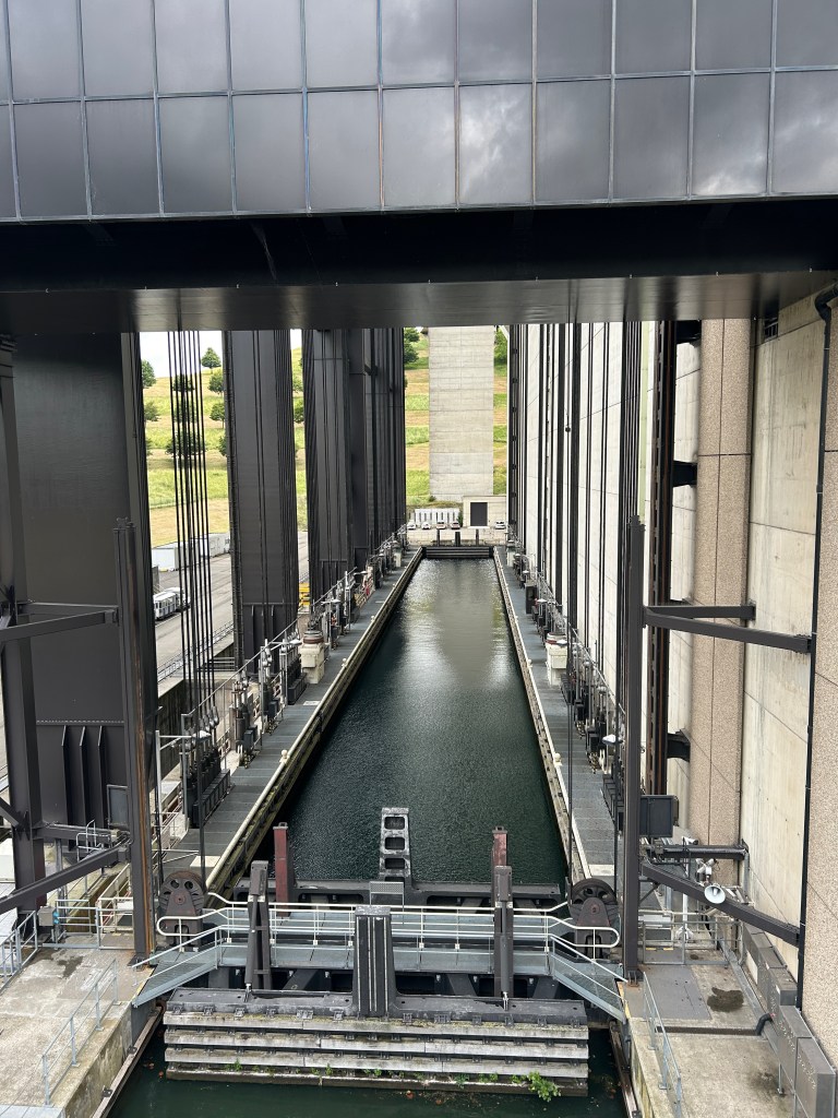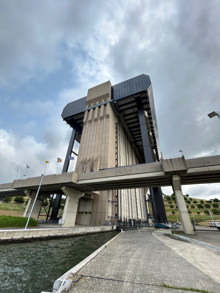 Let me rewind to our canalside stopover in Belgium. We’d had a really peaceful second night there and went out for a walk along the canal path to look at the huge boat lift. The Central Canal or Canal du Centrale is vital to Belguim’s industrial heartland and allows barges to effectively transport raw materials and goods through the coal and steel rich region.A key challenge was the elevation change of about 66.2m or 217 feet across a relatively short distance. To compensate for this the canal incorporated 4 hydraulic boat lifts which were engineering landmarks between 1888 and 1917 when they were completed.