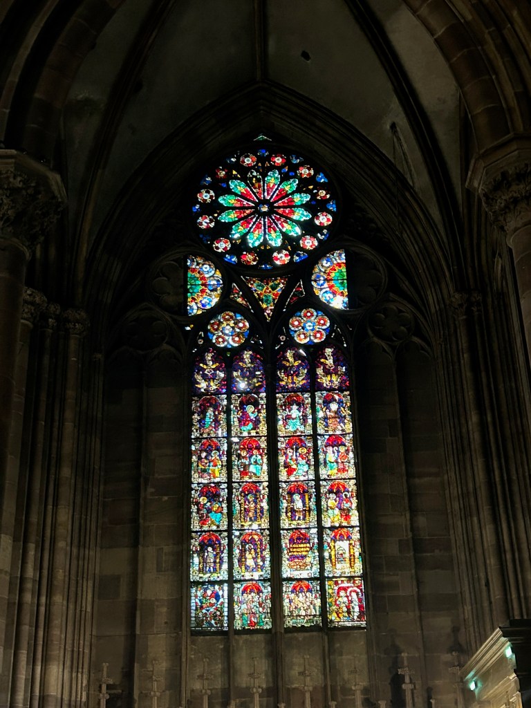 After about a 10 minute walk the Cathedral of Our Lady (Notre Dame) appeared like a behemoth, soaring between the buildings like a giant Gothic beast. It’s massive; its spire stands at 142 metres high. It’s set in the heart of the UNESCO listed Grand Ile, and is just superb. We joined the quickly moving line to enter, and stook, flabbergasted in awe at the huge interior, and its stained glass windows, especially the Rose window.