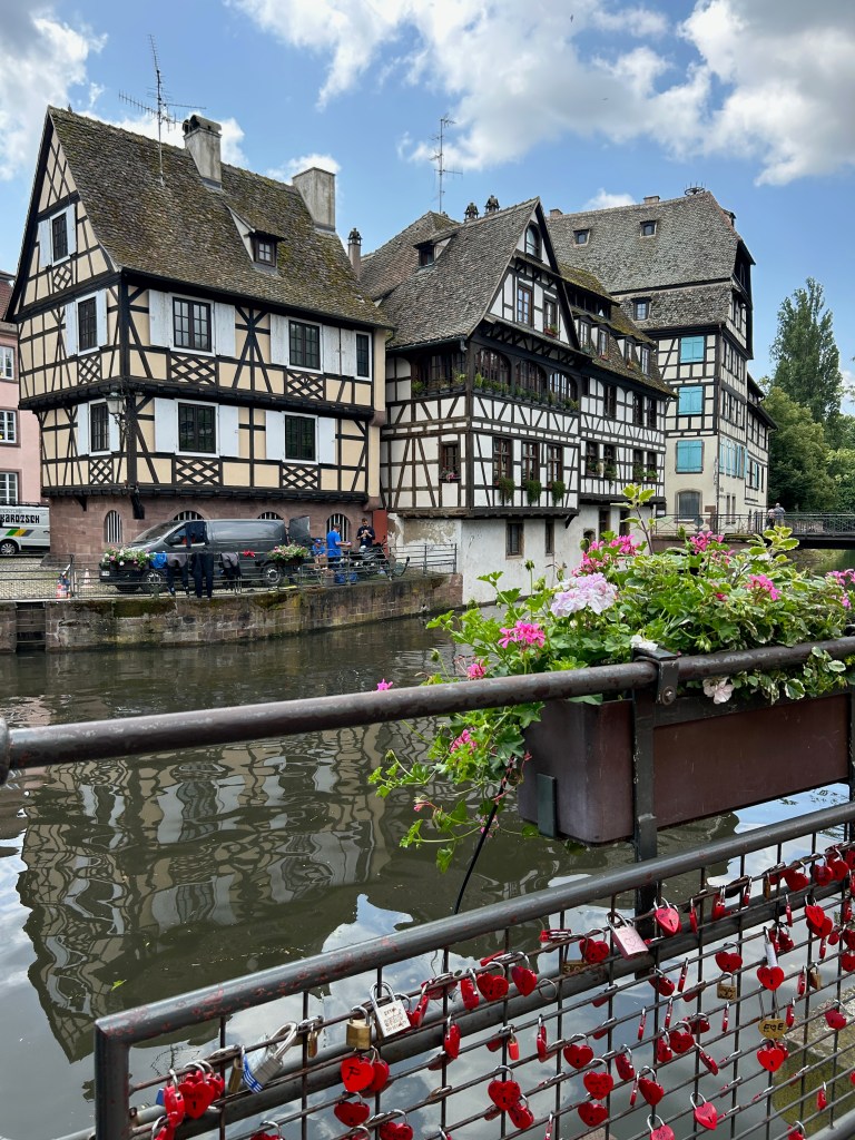 Petite France is just so picturesque and enchanting my photos just don’t do them justice, and trust me, I took many many photos trying to capture the essence of this special place. It was once the home of millers, tanners and fishermen, but is now an UNESCO World Heritage Site of cobbled lanes, half timbered houses and canals. It is famous for its Ponts Couverts, or covered bridges, which were originally built in the 13th century. These bridges, supported by stone towers once formed part of the city’s medieval ramparts, and, together with the Vauban Dam helped control access to the city and its canals. The dam wasn’t just a dam, it was a floodable defence system. In times of attack it could raise the water level and flood the southern approaches to the city, turning the surrounding land into an impassable swamp to protect against invaders. The locks and sluices are still in use today, and it was fun to watch the pleasure boat tours use them. It is obligatory to wave to all the people on the boats, as they pass by you, and they clearly understand the assignment and wave like idiots back!