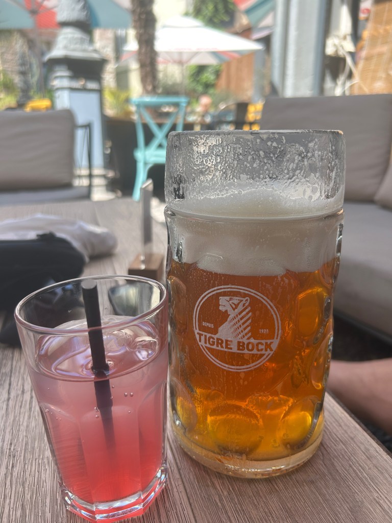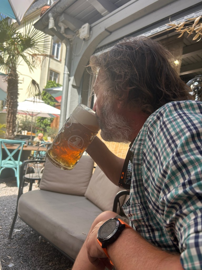 After a little 5 mile stroll, it was time for lunch. Lyn found a tiny little sausage shop that he HAD to go into, and then we had a well deserved drink in a gorgeous beer garden we found hidden away, before we got the train back.