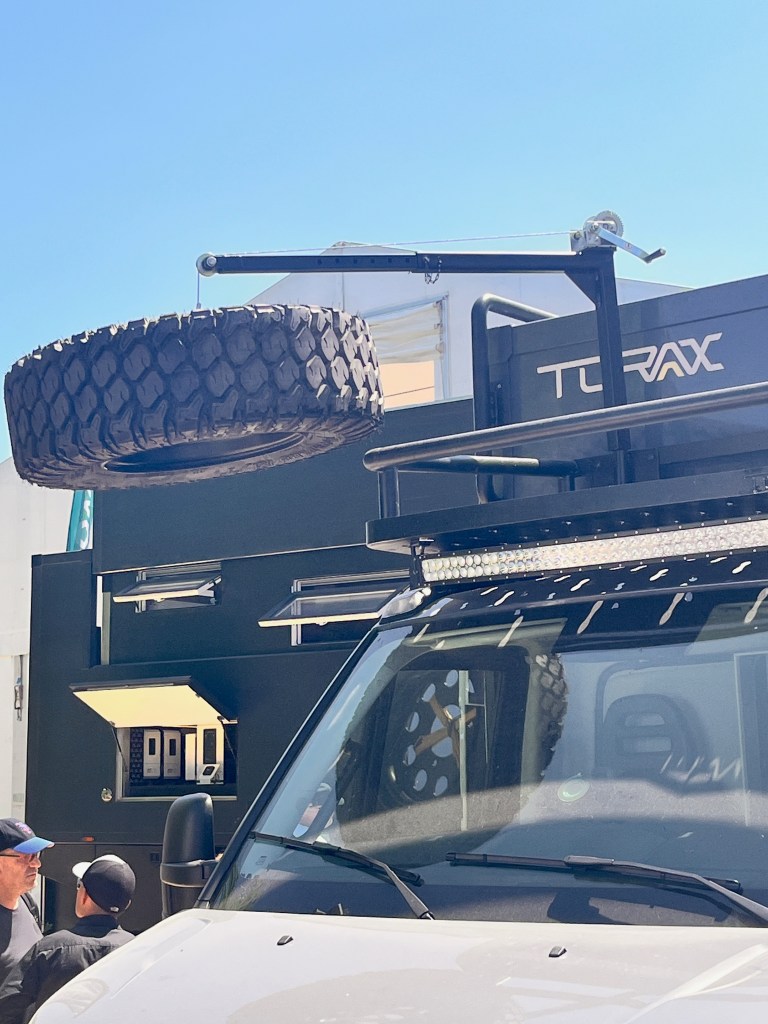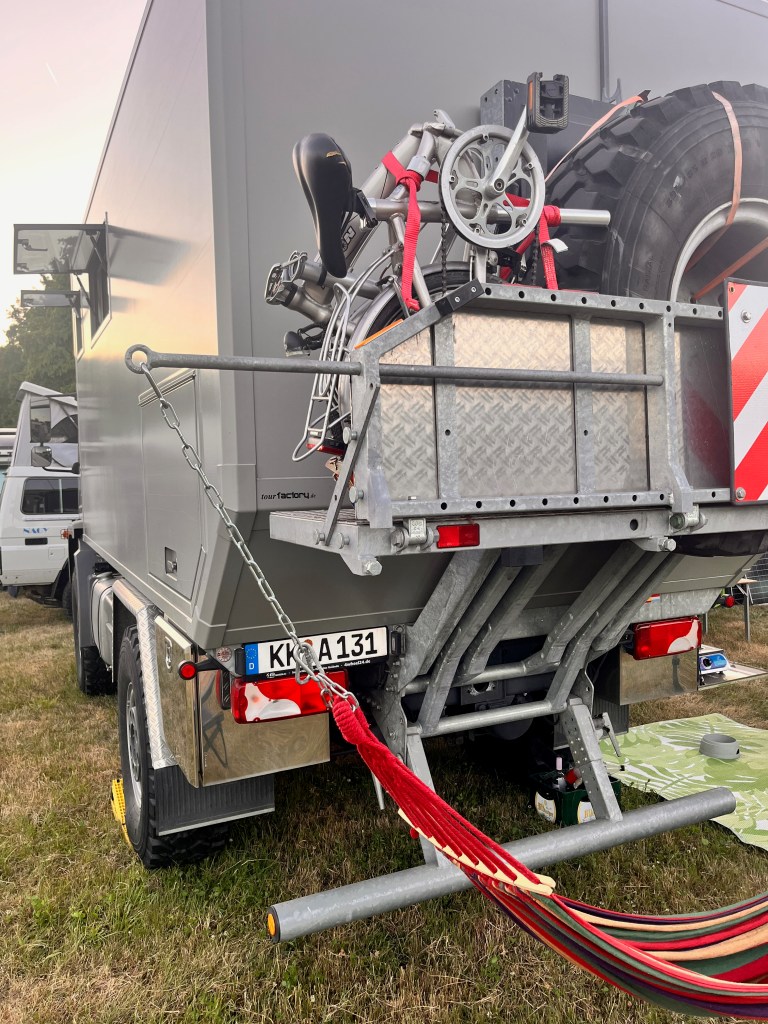 Lyn here, happy 60th to me, this was my birthday present to myself. I should have come here before I started my truck, as the Allrad is sort of an European mecca for offroad travelling. I know this wasn’t going to be Lucy’s cup of tea, but it was a must do for me. There are 3 sides to the event, the actual showground, the people and then the 4 campsites. Walking around the campgrounds was an education in itself, looking at how people have adapted their vehicles. I took away so many ideas my head was bursting. Each evening I would go out for a wander, beer in hand, which was amazing as you would expect. The first loop of campsite one took me 2.5 hours, wow! I did manage to get it down to about an hour’s constitutional in the end… I took pictures of hoists, cranes, sand ladders, wheel mounts, hammocks, slide out kitchens, BBQs, tables etc etc.