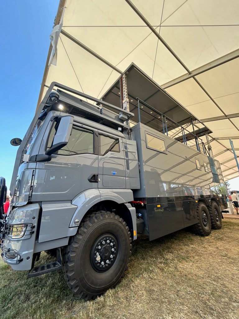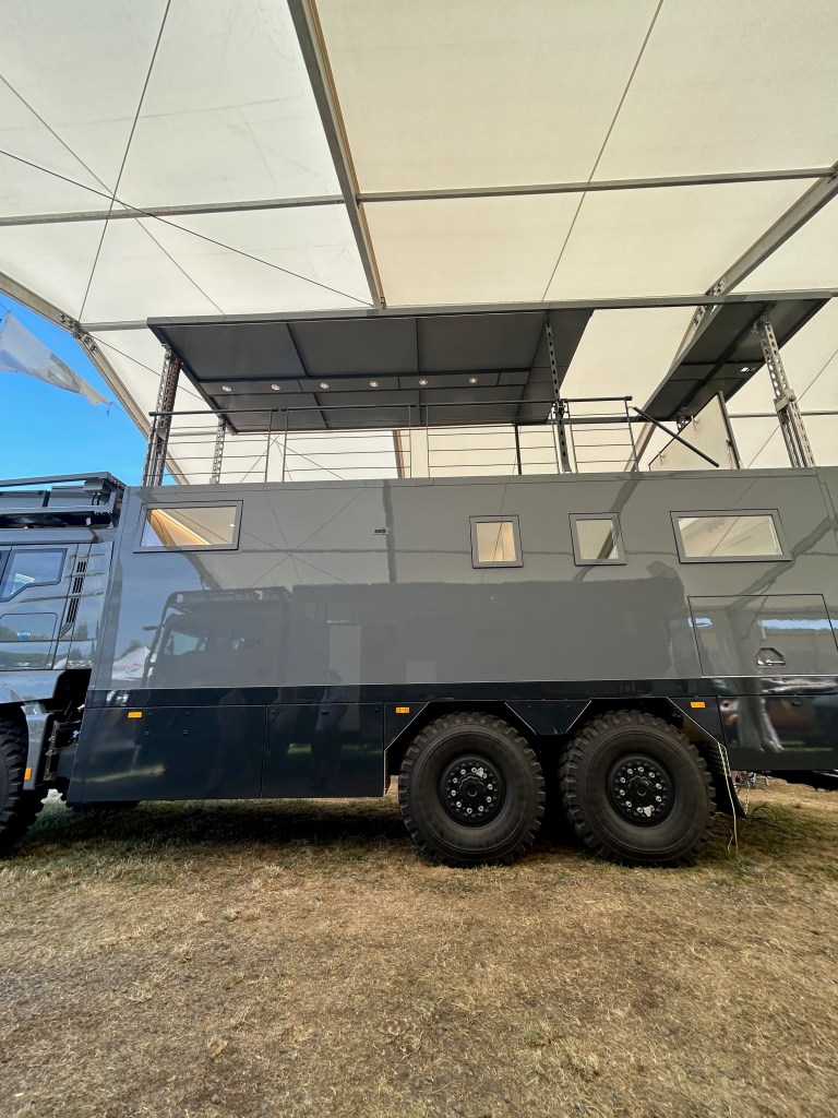 All this before I even got into the showground. I bought a 4 days pass as I knew I would be in every day. Day 1 with Lucy was to scope it out including a visit to Motorcraft from the UK who built our truck and we also met some other MC customers which was cool. For 15 Euro you can drive a huge old 6 wheel truck on an offroad course, or queue on the Land Rover stand to have a drive on their wet course ( it was all very ‘nice’) but they did have a point you could get a wheel off the ground for that Instagram picture !!! Add this to water filters, winches, air track fittings, BBQ, roof tents, shock absorbers, and all the other wonderful bits you really NEED on your 4×4 and you get the idea. I was expecting a lot more big truck stuff, but it looks like their current market trend is for 4×4 pickups and smaller 3.5ton 4×4, as the age profile of customers with lightweight driving licences (=3.5t) comes into mainstream use. Older people still have up to 7.5t but are slowly leaving the market for producers. As expected there were a few £1m plus trucks in the show and the campground, but I forgot my chinos and prefer beer to white wine anyway. I had a tour of one vehicle, talking to the builder who explained about the amount of work that went into the veneer carpentry and how the owner wanted to have an office set up. When asked where the 6 wheel (6×6), 33t beast had gone on its travels Spain was the furthest !