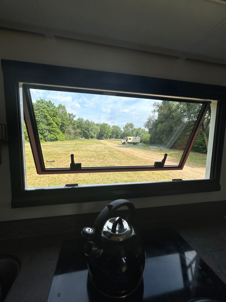 So, back to me now! I found it all a bit overwhelming, with the number of vehicles and people, how crowded the campsite was, being on “display” all the time and very definitely the heat didn’t help! I wouldn’t be in a rush to go back, but we did manage to stay until the Monday, when we left the campsite at lunch time. It was a completely different setup then; just us and a few others in a beautiful green area. Bliss!