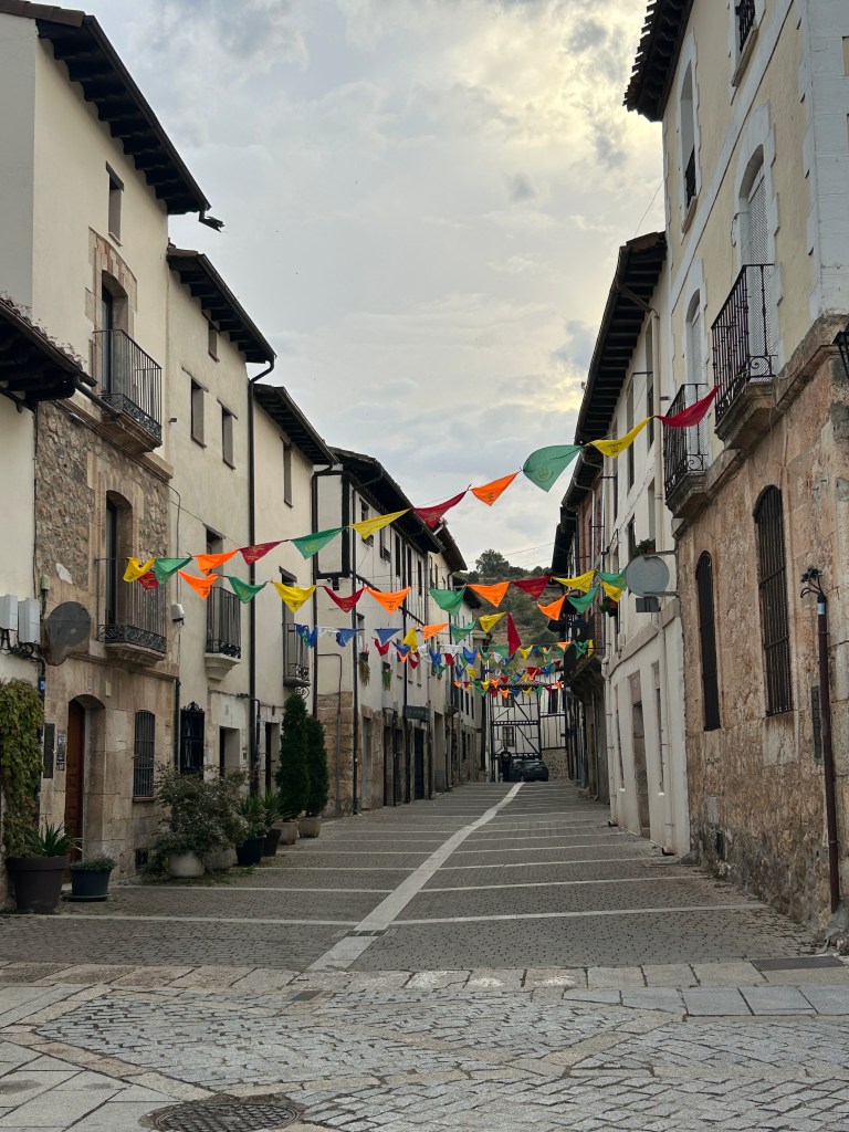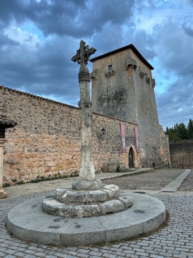 The journey to our next stop was not too bad at all; a bit of motorway and then gorgeous countryside. We had planned on going to Burgos, as I had fallen in love with it (and the churros I had there) when I visited in 2022, but I decided to forgo it this time, as I am finding I much prefer the quieter park ups in the smaller places. Instead we headed to the little village of Covarrubias. Covarrubias is another medieval village tucked into the rolling hills of Burgos province. It feels almost untouched by time with thick defensive walls, narrow cobbled streets and stone houses gracing quiet squares. We wandered along the riverside outside the town walls, and found a church where the gorgeous singing from a Friday evening service wafted out over the gaze of the statue of Princess Christina of Norway. She was the daughter of King Sigurd 1 of Norway who travelled to Spain to marry Prince Felipe of Castile (brother of King Alfonso X) but sadly she died a few years later in 1262, and her tomb still stands today.