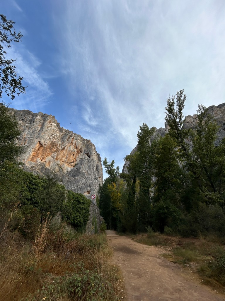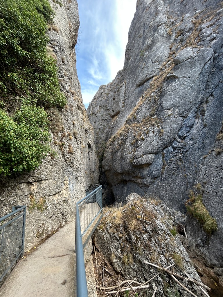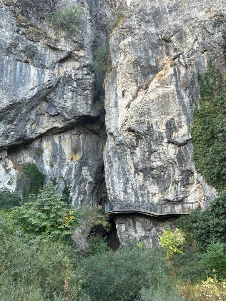 We left relatively early the next morning to drive to the La Yecla gorge walk that David and Janette had recommended in the Frias park up. We parked outside the huge tunnels carved through the cliffs for the traffic to drive through, and walked in, watching the huge vultures and raptors circling above, and praying one wouldn’t swoop down and carry me off by my hair!