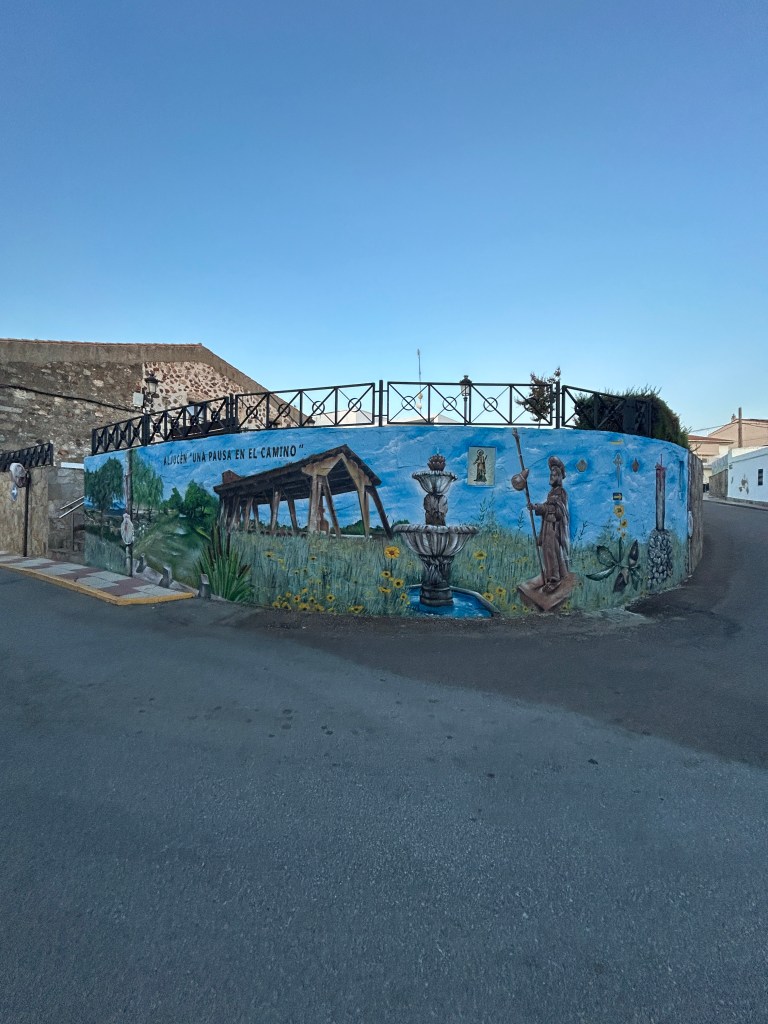 The church is a landmark for pilgrims on the Via de la Plata, or the Silver Route, from Seville to Santiago. This follows the old Roman road that links the mining area of the north with Seville in the south, about 1000km long. The village of Aljucen has strong Camino links, with the customary yellow arrows and shells pointing the way through. It also has an alburgue (dormitory) at the start of the village, and a big camino mural. I know a lot about the Camino Frances across the Pyrenees from France into Spain, as I did a few weeks of that in 2022 until the boiling sun and heat beat me, and the Portuguese Camino where a hospital visit ended my trip from Porto to Santiago early. On this trip I have been amazed by how many other Camino sections we have stumbled on. In Covarrubias we saw signs and arrows for the Camino Olaf. We were on part of the Camino San Olaf in Covarrubias, which is a short pilgrimage of about 60km honouring Saint Olaf. We also passed over some of the Camino El Cid. This is longer at over 1400kms, from Burgos to Valencia, celebrating the legendary journey of Rodrigo Diaz de Vivar (el Cid Campeador) the medieval Castlian hero. I’ve really enjoyed spotting arrows and shells again!