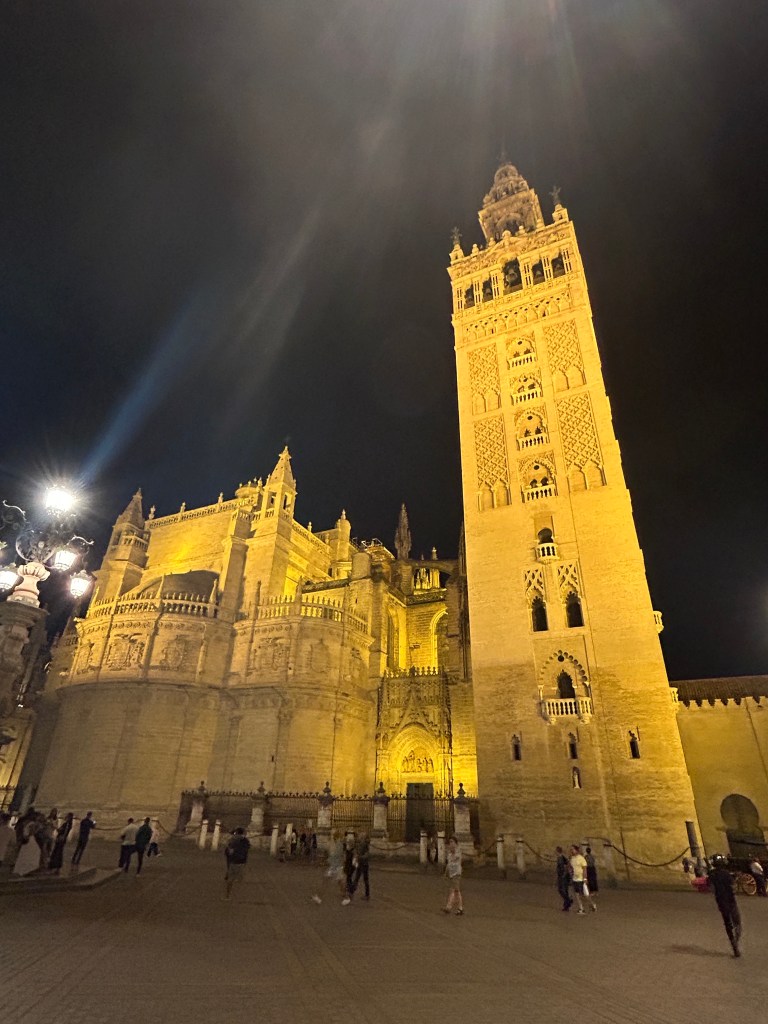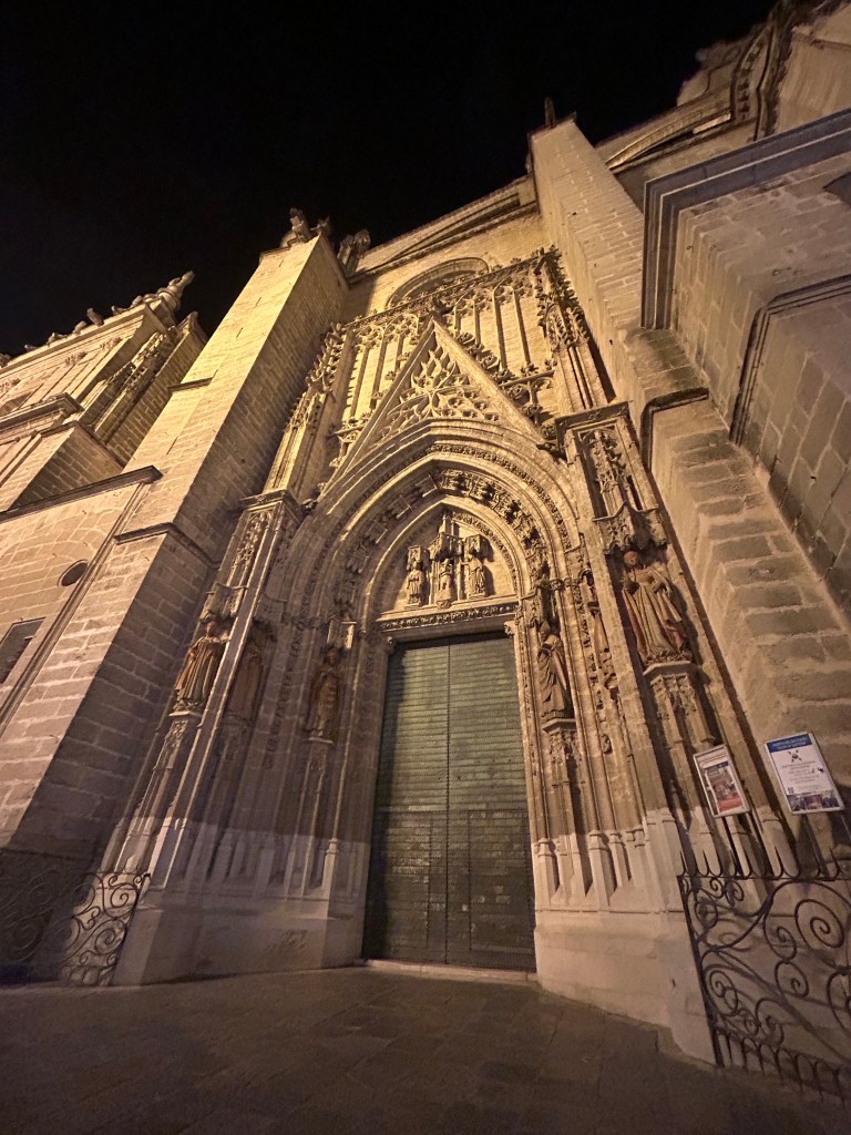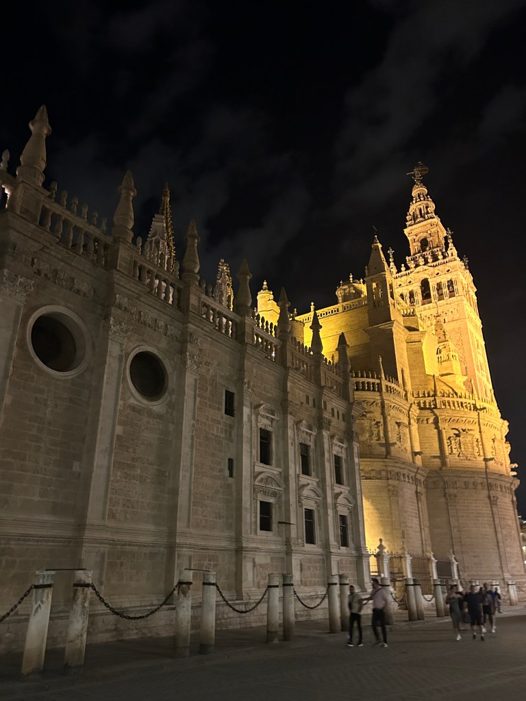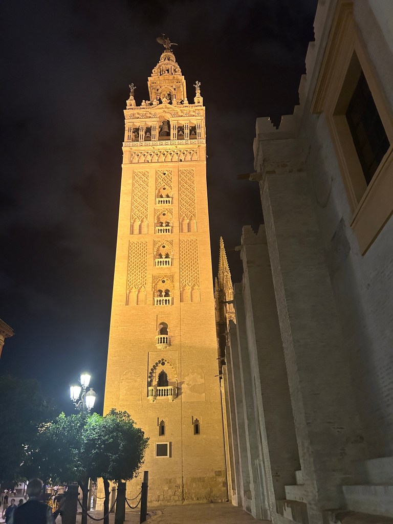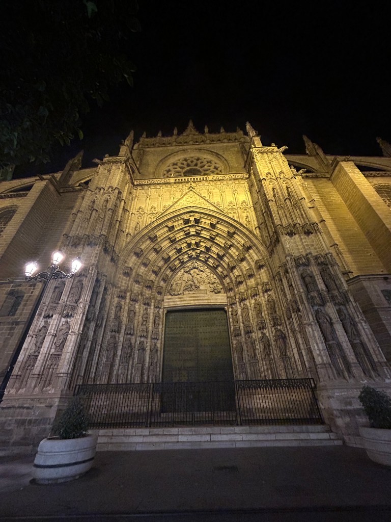 We left there and got a drink, as it was still very hot, then wandered over to the cathedral. It’s not just any old cathedral, but is, in fact, the world’s largest Gothic cathedral that dominates the heart of Seville. I didn’t get to go inside as tickets had sold out, but it holds the tomb of Christopher Columbus. It was certainly very impressive from the outside, especially lit up.