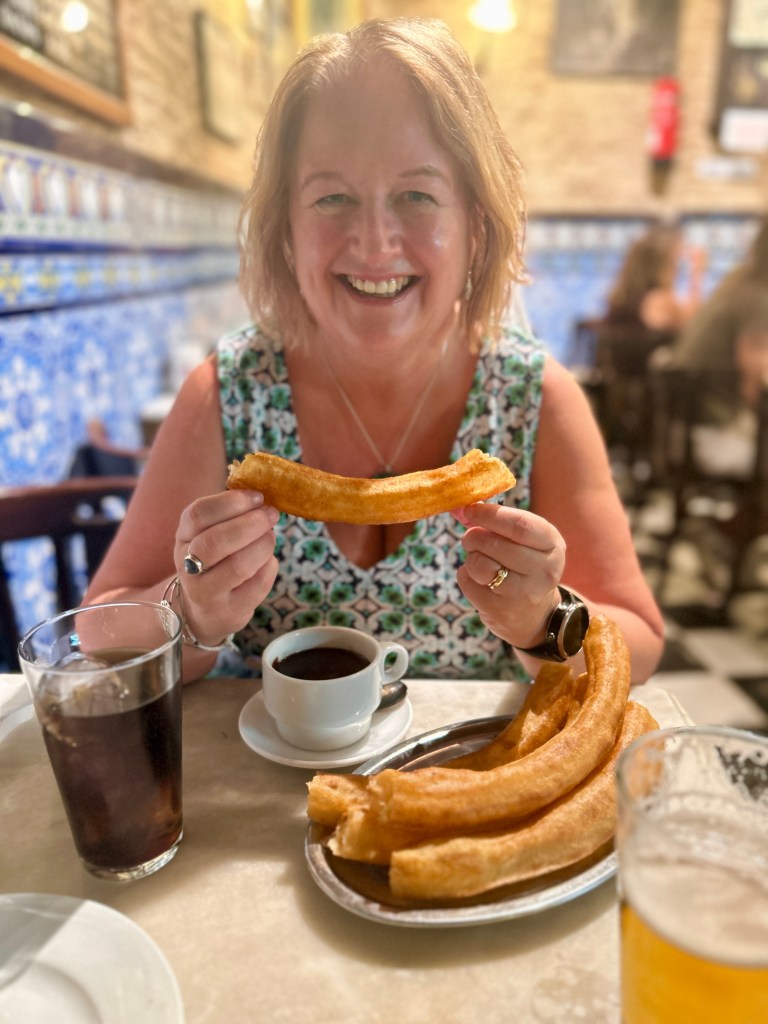 We caught a bus back in the next day, and headed through the maze of narrow alleyways that make up the Barrio Santa Cruz, or the former Jewish Quarter. It was gorgeous, with lots of bars and restaurants filled with people on little tables outside enjoying the sunshine. I was desperate for churros, so we found a tiny little local cafe where I was not disappointed! We then walked onto Las Setas, (The Mushrooms). This is a modern wooden structure that provides shade during the day, and we were glad to sit down for a while to chill, before heading off to find a little bar and sit down and people watch before me picking up a fan at lovely fan shop. It was time to get the bus back and get ready to leave Seville. It had been a fabulous two days.