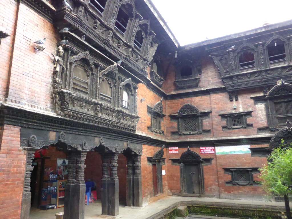 We went into the Kumari’s square and were allowed to look up at three windows and hope she would appear and wave to us. There were people there sitting, waiting, watching and taking photos of the building. After a few minutes a man appeared and told us that there were to be no photos taken of her, how we were to greet her (bow and namaste) and how we could give a donation for her education.