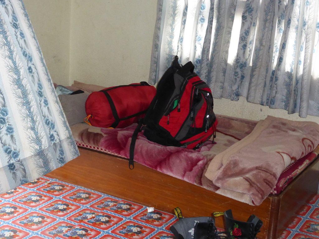 The flights went smoothly and I managed to get my visa easily. I picked up my luggage but then realised I needed the baggage slip which was on my first boarding pass, somewhere deep in my rucksack as I didn’t think I’d need it again. Oops! I found my way out of the airport and looked for Devon who was meeting me. He was a few minutes late and in that time I had swarms of men surrounding me all claiming to be a friend of his. Obviously they all wanted paying. I had not changed any money and wasn’t going to hand over a £20 note. They weren’t happy and I felt quite intimidated. Devon soon arrived and rescued me. The traffic in Kathmandu is like nothing I’ve seen on earth. I don’t know how I’m going to cross a road. The roads are full of potholes and rubble and there are no lanes, just swarms of motorbikes weaving in and out, buses, cars etc, all blowing horns constantly. Terrifying. We got to the house and Devon showed me to my room. I’ve got a very basic but clean single room with a shared bathroom and a little balcony. He took me to the communal area where I met Salve, who is in charge. She is lovely and gave me a big hug. That of course made me cry. I’m so hot and tired, having travelled overnight for 16 hours. I also met Sanju, who will do my orientation tomorrow and Wednesday. I’ve got to sort out changing money and buying an adaptor and getting food tonight when all I want to do is roll up and sleep. I know things will get better but it’s really hard now. I miss Lyn and the kids, and am wondering why we are not doing our usual road trip in America right now. Who’s bloody idea was this?