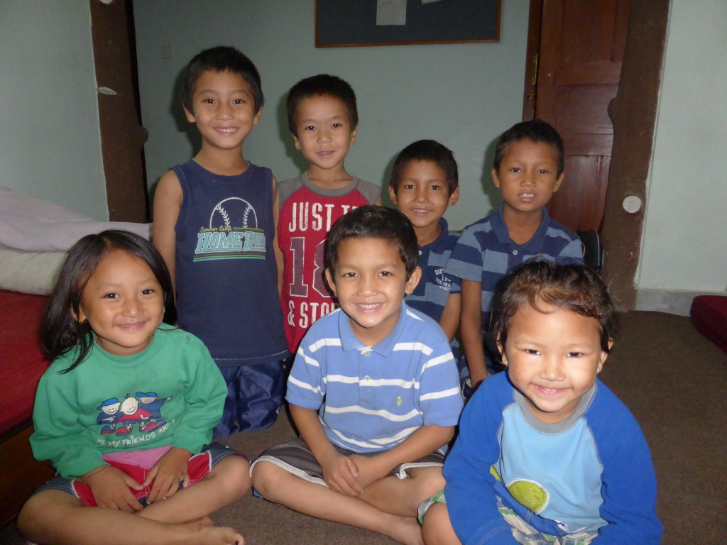 Sanju left me and Eddie, the Australian 20 year old volunteer called me into his room next door for a chat. After 2 minutes chatting Smith came to find me to introduce me to Pema. Sanju had told me about an orphanage about 15 minutes from the monastery and asked if I’d like to volunteer there as well. I said yes, so Pema came to meet me to walk over to show me where it was. He took me the long road way as it was raining. We got to the house and went up to the first floor flat where I met Mingma his wife who is a doll. She trained as a social worker and wanted to open an orphanage. They have 7 children living there aged between 3 and 10, who sleep on 3 bare mattresses in one of the 4 rooms. They also have a 10 month old baby of their own who was sleeping on one of the mattresses.
