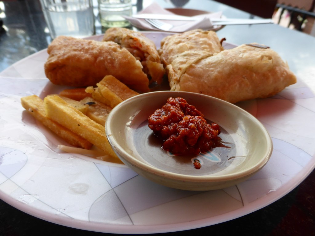 I can’t walk through Thamel without spending! A couple more souvenirs and then I stopped for lunch at the Northfield Cafe, another great space, full of greenery and chill out music. I ordered a mocktail, no alcohol when I’m on my own, a plate of fries and vegetable tempura. The chips weren’t that nice so I ended up only eating one or two, and left half the tempura. That meal, with the mocktail and a diet coke cost me under 3 pounds.