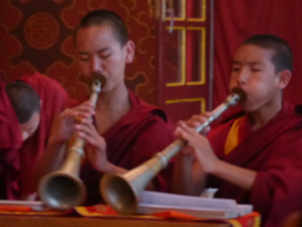 There is no way I can describe it. It was a seemingly discordant cacophony of Tibetan chanting, drumming, incense swinging, trumpet blowing, cymbal clashing, candle lighting, conch shell blowing noise that is obviously sacred to the monks. They celebrate 2 pujas a day, every day.