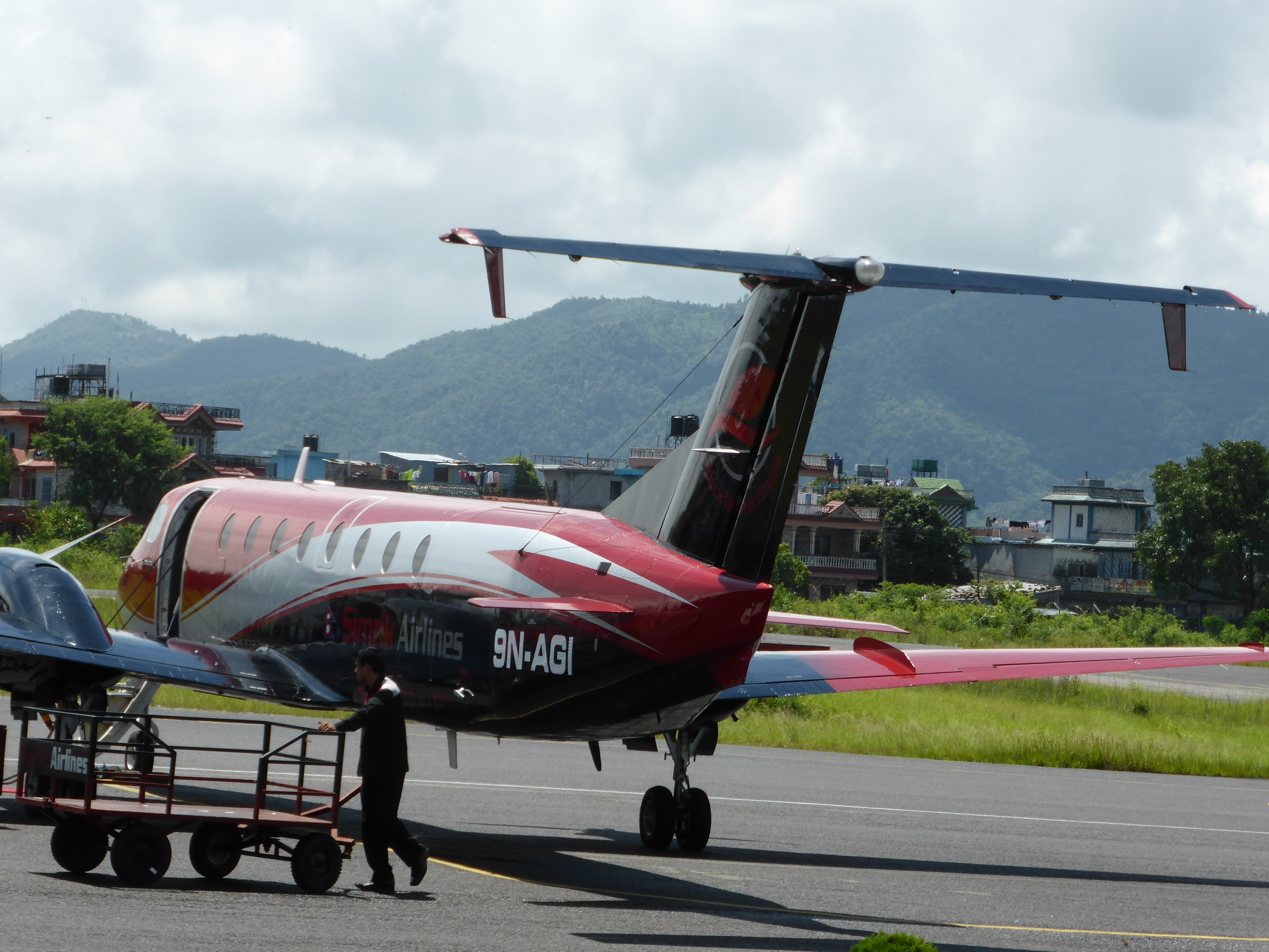 Woke at 4am today, to heavy rain; not good as today was the day the taxi was booked for 5am to take me to the airport to catch the Everest Mountain flight; a 1 hour scenic flight around Everest that would not run in bad weather, Ended up waiting 3 hours before it took off. It was amazing to see the peak of Everest poking through the clouds.