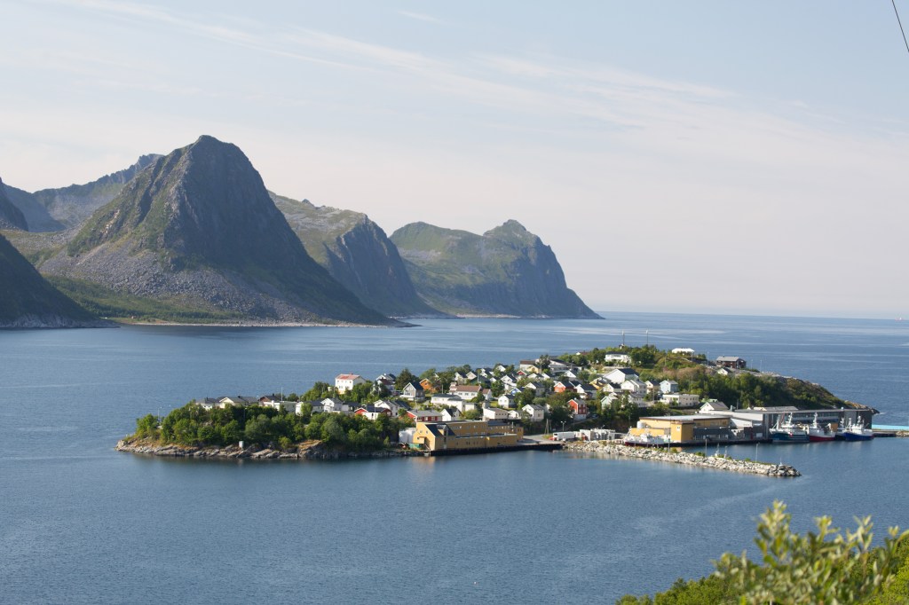 We soon got to Finnsnes, at the gateway to Senja. Typically there was a market in the streets, so the sat nav took us through all the back roads. We stopped in our first Norwegian supermarket. Ouch! Four pounds fifty for a nice loaf of bread?? We crossed the bridge into Senja, and followed Tourist Route 82 twisting and winding our way towards our first stop; the spectacular village of Husoy.