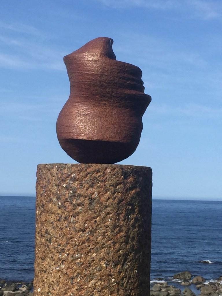 We had a chilled morning after that, and then packed up the van and drove to Eggum, to see the beach and the famous Eggum head. This is a famous art sculpture, and quite unique. It is located half a mile down a track on a remote spot overlooking the sea. As you approach it it looks like a man’s head looking out to sea. As you walk around it, it appears to change so that the man’s head is upside down! You need to see it to appreciate it!