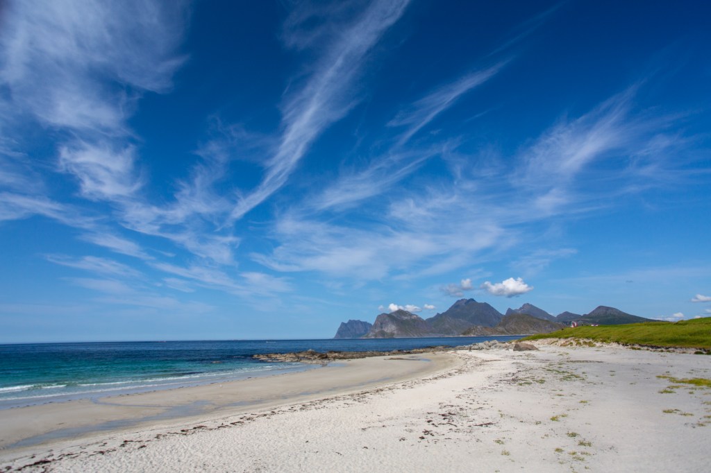 We drove on, and managed to spot more lovely beaches. This area of the Lofotens, the Vestvagoy is definitely my favourite; beautiful beaches, rugged mountains and clear turquoise blue water.