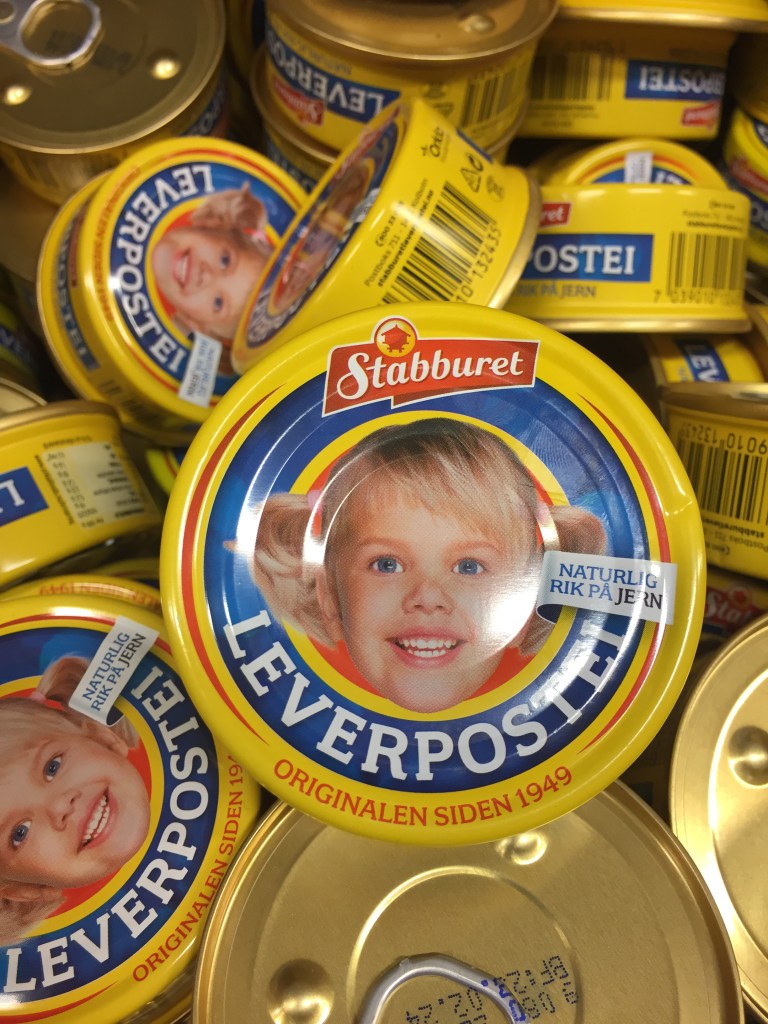 We drove on to Leknes, which is quite a big town by Lofoten standards, with a population of around 3500 people. We called in at one of the biggest supermarkets we have been to. I find food shopping in Norway quite difficult. There is a sugar tax in Norway, so it is not easy to pick up a quick fresh cake or donut etc, and their chocolate is mega expensive, and there’s not much of it at all! Pop is also very expensive. The coke is 3 pounds 20 for 1 litre, and a bar of chocolate is 3 pounds 65! We didn’t buy any! We also have failed dismally at this language thing! We bought, what I thought, was a nice bit of expensive Norwegian cod, only to find (after I had taken the first mouthful) that it was slightly salted cod. If that was what they call lightly salted I would hate to taste really salted! It was horrible; I couldn’t eat any of it; what a waste. I was also intrigued by the packets of dried salted cod, hanging everywhere as a tasty snack. Umm, no thanks, not for me! Also I have no idea who the little girl is on the tins, or what is in the tins, but she is everywhere. The supermarkets also only sell beer and cider. For anything stronger you have to go to a government owned store called the Vinmonopolet, which is the only place you can buy alcohol stronger than 4.75%. It is very expensive as it is heavily taxed as part of a strategy to curb alcoholism. I bought an eye wateringly expensive bottle of small batch Norwegian gin, which worked out at 35 pounds for 50cl. I have to drink it slowly!!